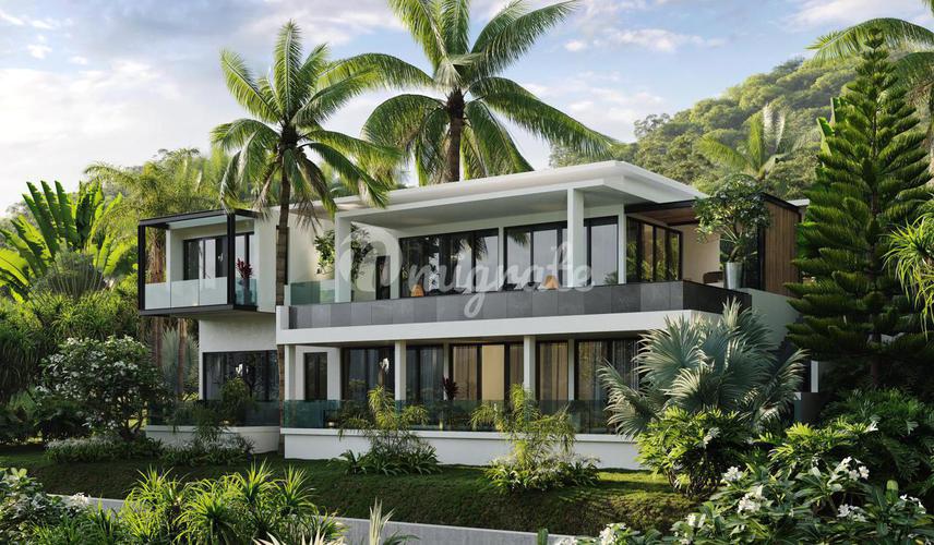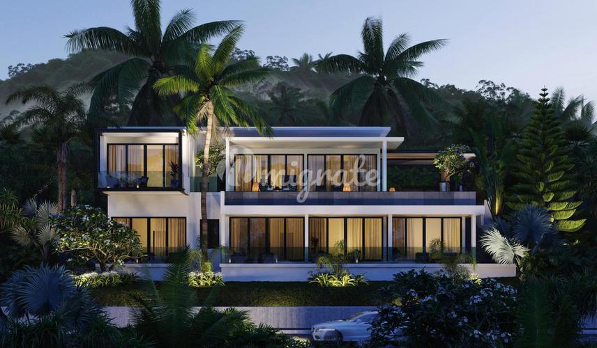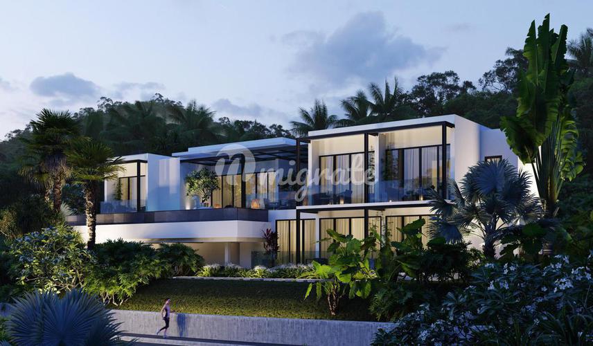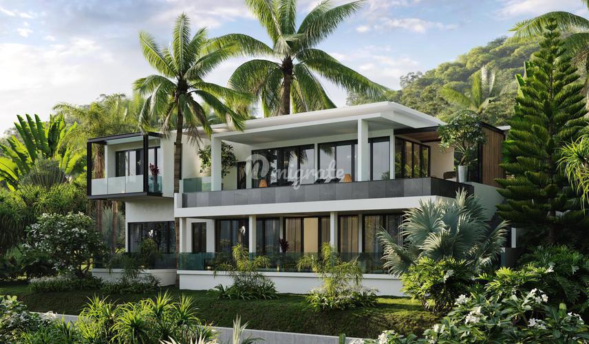 Вилла с бассейном, расположенном на третьем этаже. С террасы у бассейна открывается потрясающий вид на закат и горы, покрытые изумрудной тропической зеленью. Вилла с 5-ю спальнями, каждая из которых о