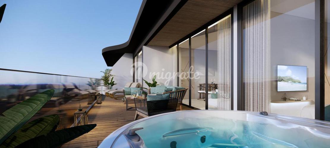 Вилла с 4-мя спальнями и 5-ю ванными комнатами в комплексе. Вилла занимает 2.5 этажа: на первом расположится парковка на 3 автомобиля, на втором - гостиная с выходом в приватный бассейн и отдельно кух