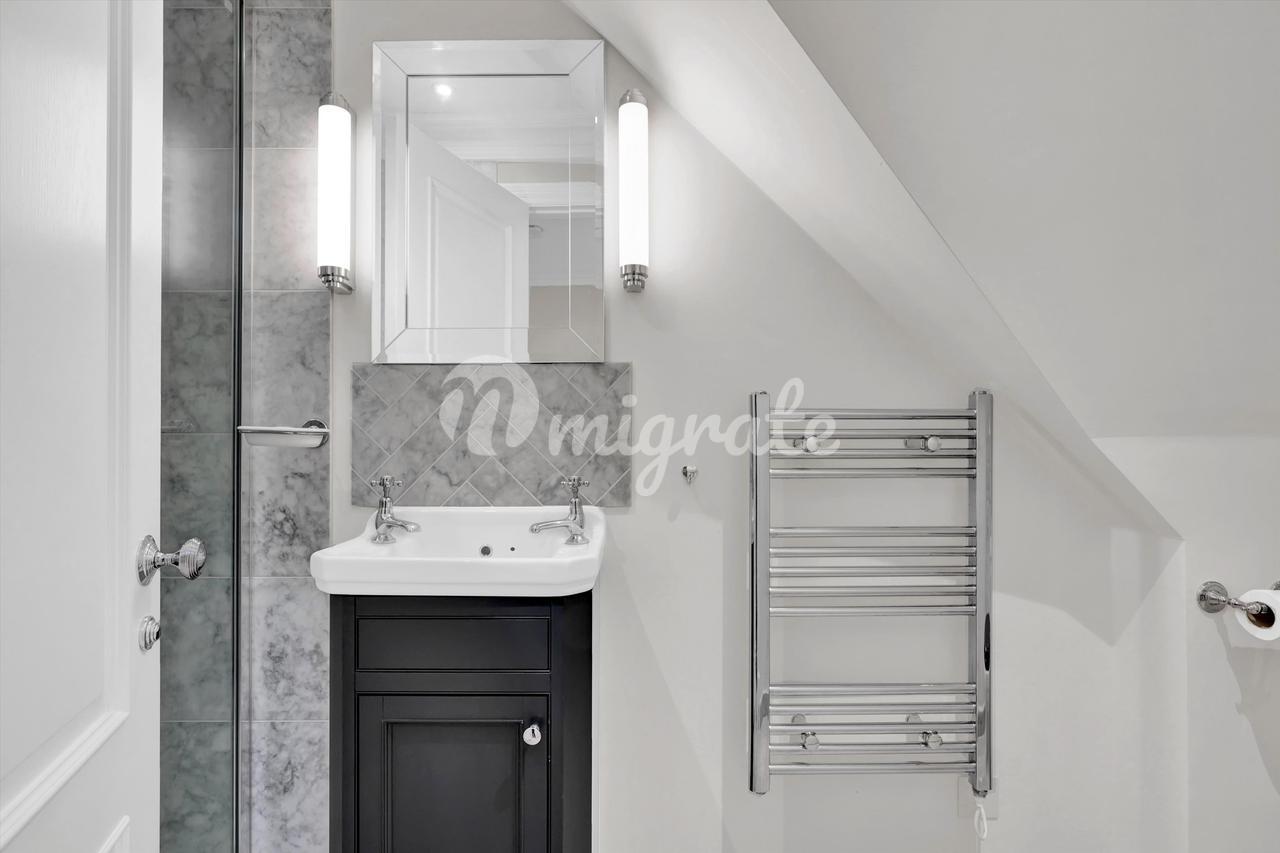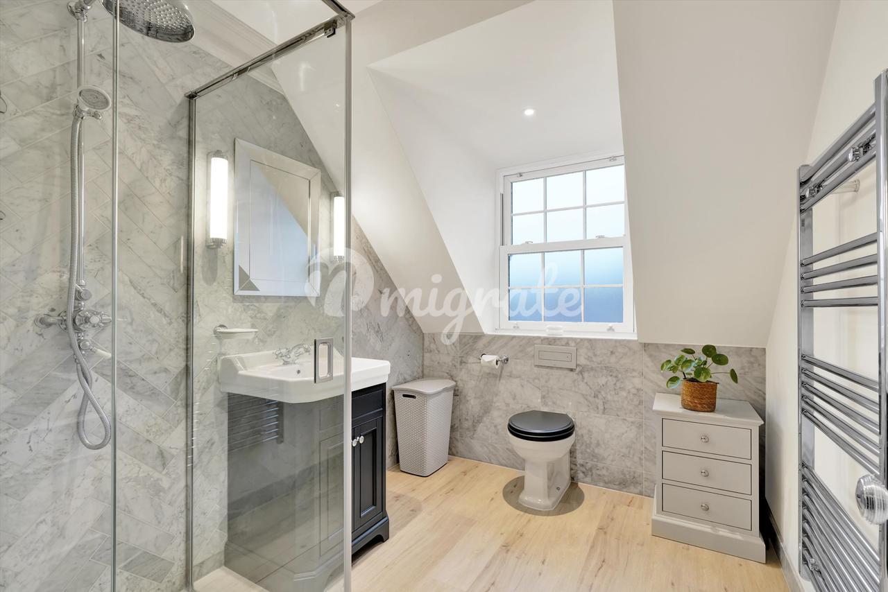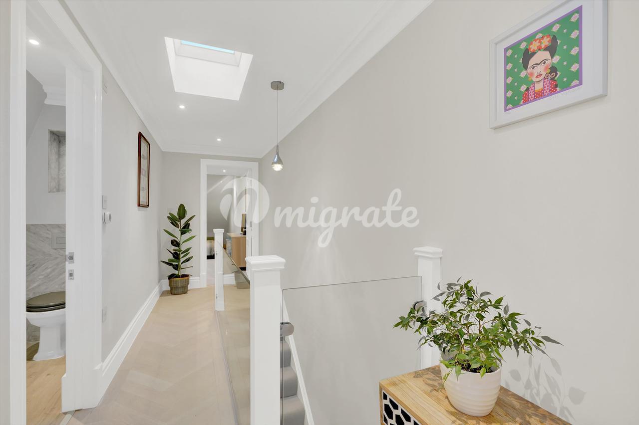 Небольшая застройка шести объектов была завершена в 2019 году и оснащена новейшими характеристиками и технологиями, включая полы с подогревом, кабельную систему категории 6, освещение, управляемое смартфоном, системы безопасности и входные системы. В комплексе есть общее запираемое помещение для хранения велосипедов и общее видеонаблюдение. Это также извлекает выгоду из выделенной парковки. Этот мезонет также включает в себя долю собственности. Внутри квартира отделана по высоким стандартам. Гостиная расположена наверху на первом этаже и включает в себя кухню/гостиную/столовую открытой планировки с кварцевыми столешницами и деревянными полами в елочку. На втором этаже расположены две спальни с двуспальными кроватями, одна со встроенными шкафами и собственной душевой комнатой, а также отдельная семейная ванная комната. Обе душевые комнаты отделаны плиткой из итальянского мрамора Carrera и оснащены полотенцесушителями.