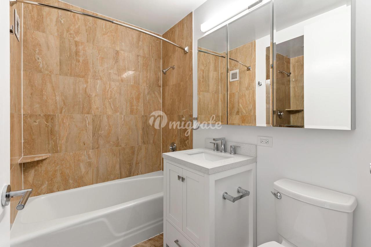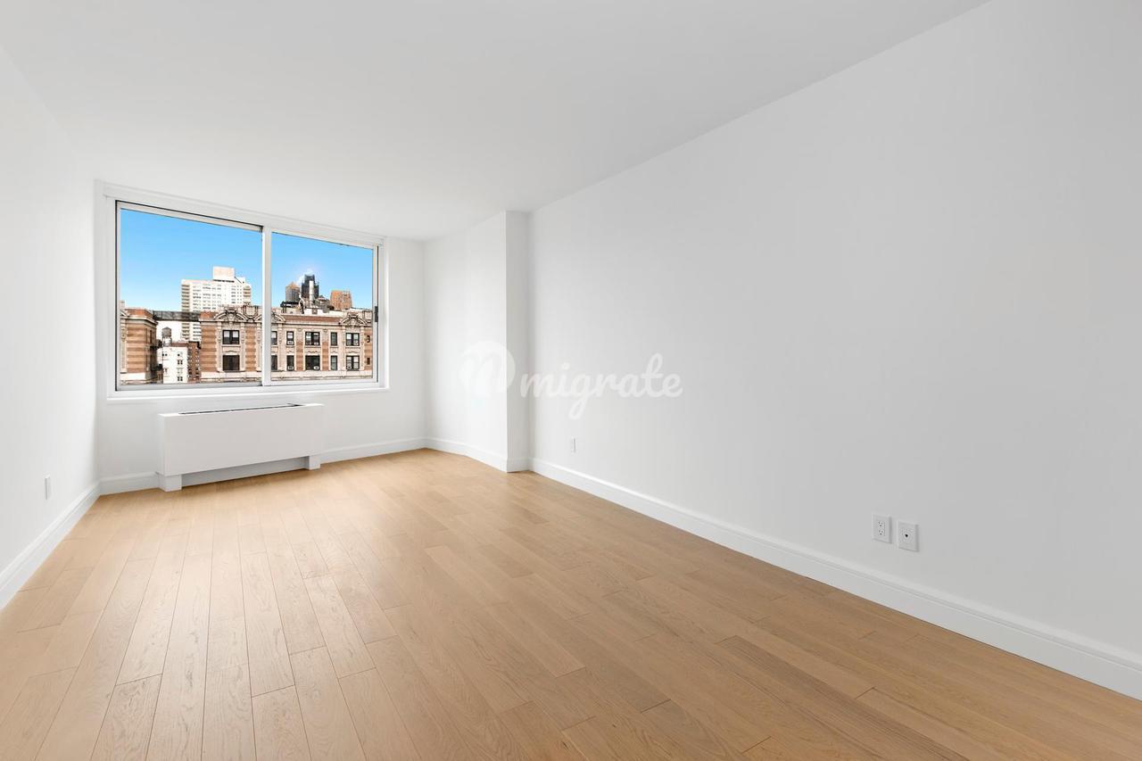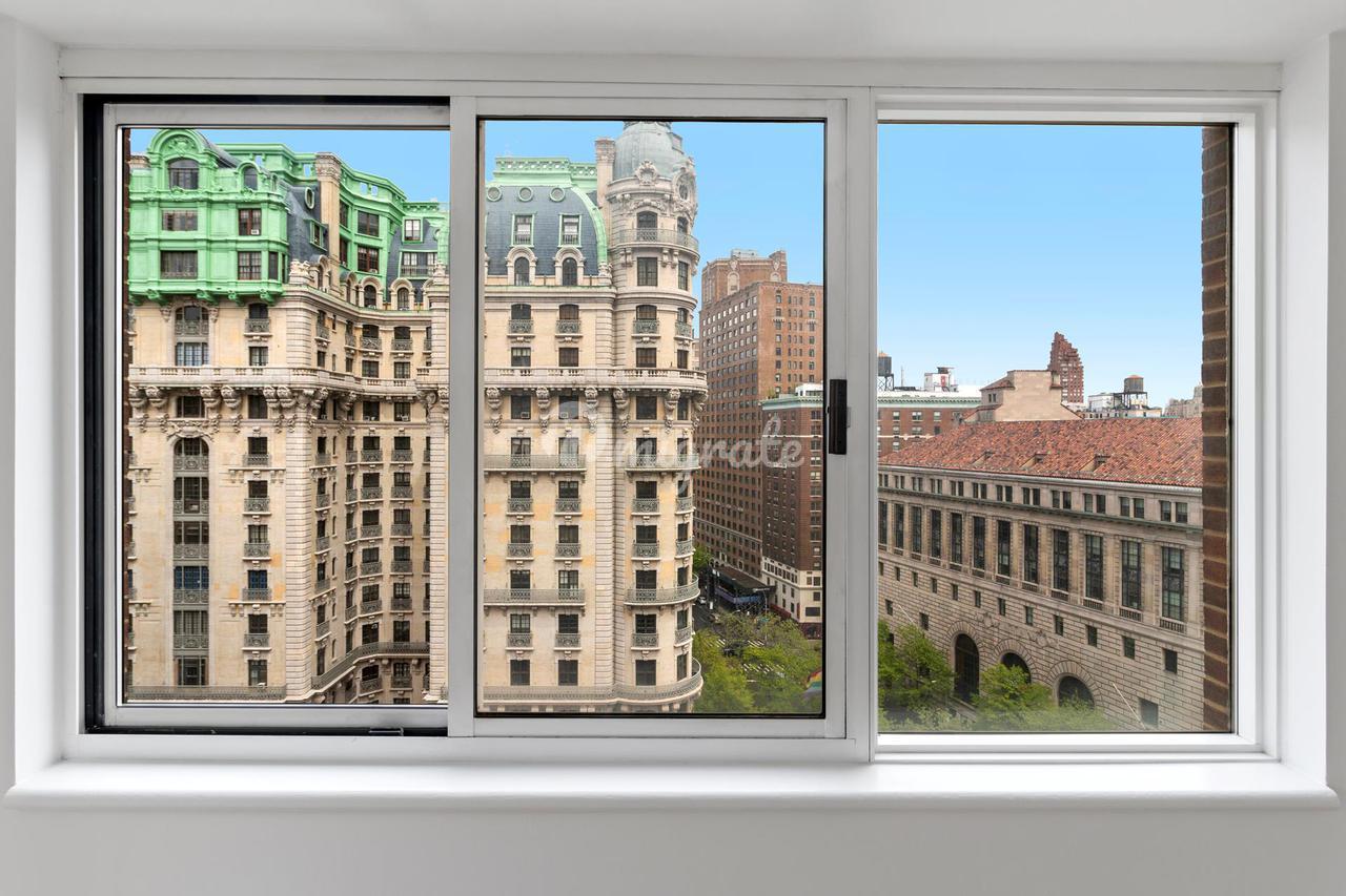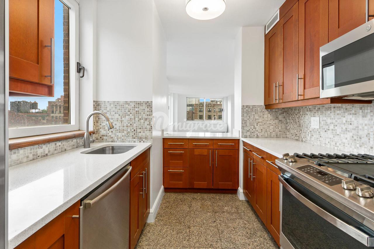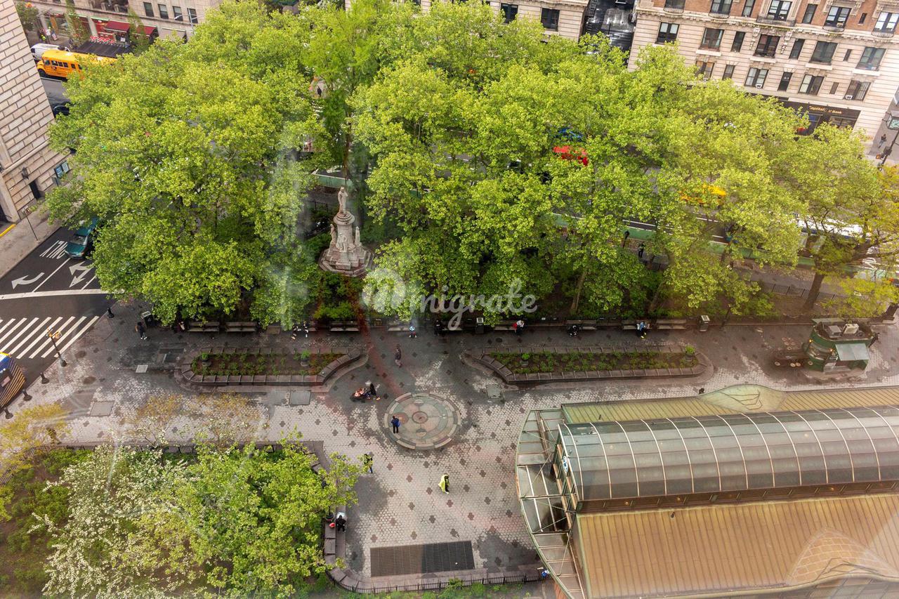 Войдите в просторное фойе с несколькими шкафами для хранения вещей и шкафом для стиральной машины и сушилки. Большая гостиная состоит из гостиной и столовой зон, с северной стороны которой открывается вид на Бродвей, а с восточной - на площадь Верди, красивое зеленое пространство между Бродвеем и Амстердам-авеню. Кухня с окнами выходит в обеденную зону через барную стойку для завтрака.