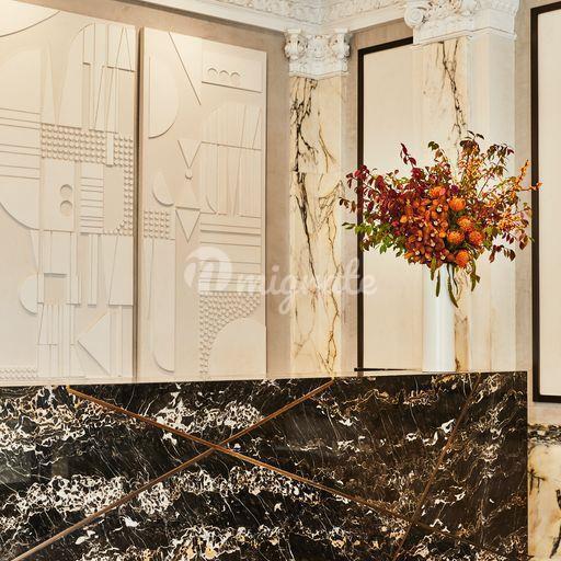 Большая спальня дополнена большим шкафом и универсальной гардеробной, которая может использоваться как офис. Изысканная основная ванная комната отделана от пола до потолка мраморной плиткой Calacatta Gold, Nero Gold и Tundra Grey, украшенной мраморной мозаикой Haisa. В ванной комнате установлен туалетный столик с двойной раковиной и полы с подогревом.