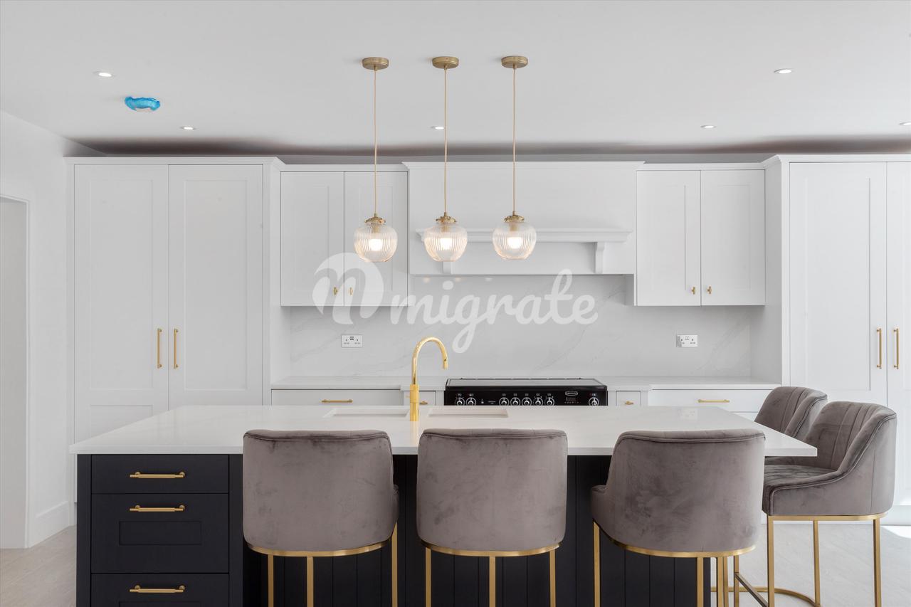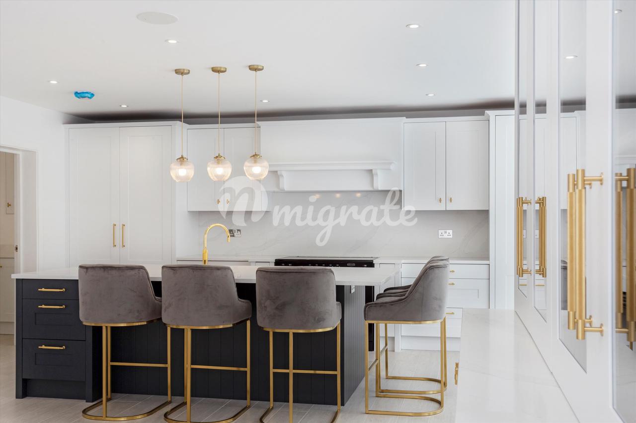 Впечатляющий вестибюль обеспечивает доступ ко всем основным комнатам для приемов, включая потрясающую кухню / столовую / семейную комнату открытой планировки, которая ведет к двустворчатым дверям в сад на заднем дворе. Кухня Anthony Mullen ручной работы со вкусом обставлена современной мебелью, а также краном с горячей водой Quooker, винным холодильником, встроенной бытовой техникой и выходом в отдельное подсобное помещение.