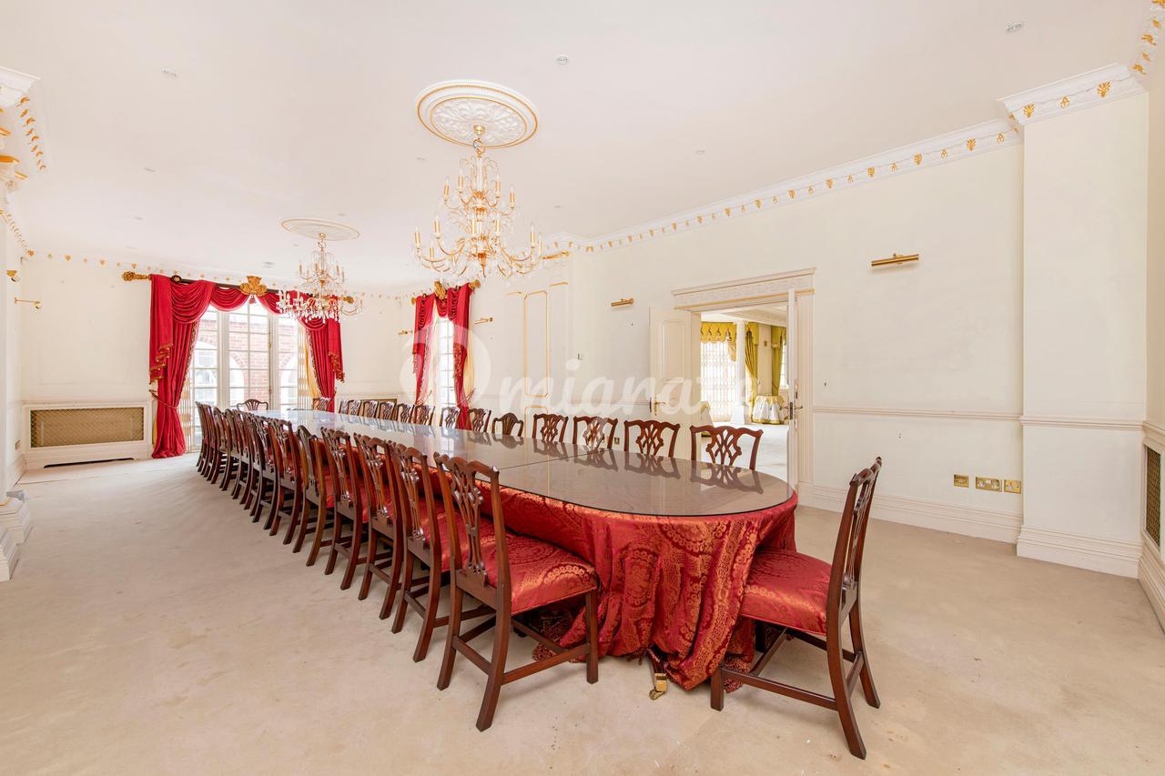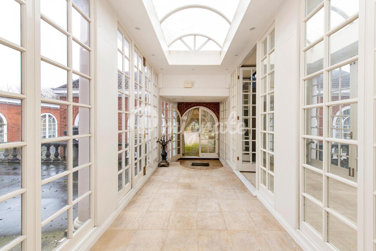 Отдельностоящий особняк в палладианском стиле с правом собственности, расположенный за закрытой въездной дорожкой с большими частными садами сзади и парковкой во дворе.
