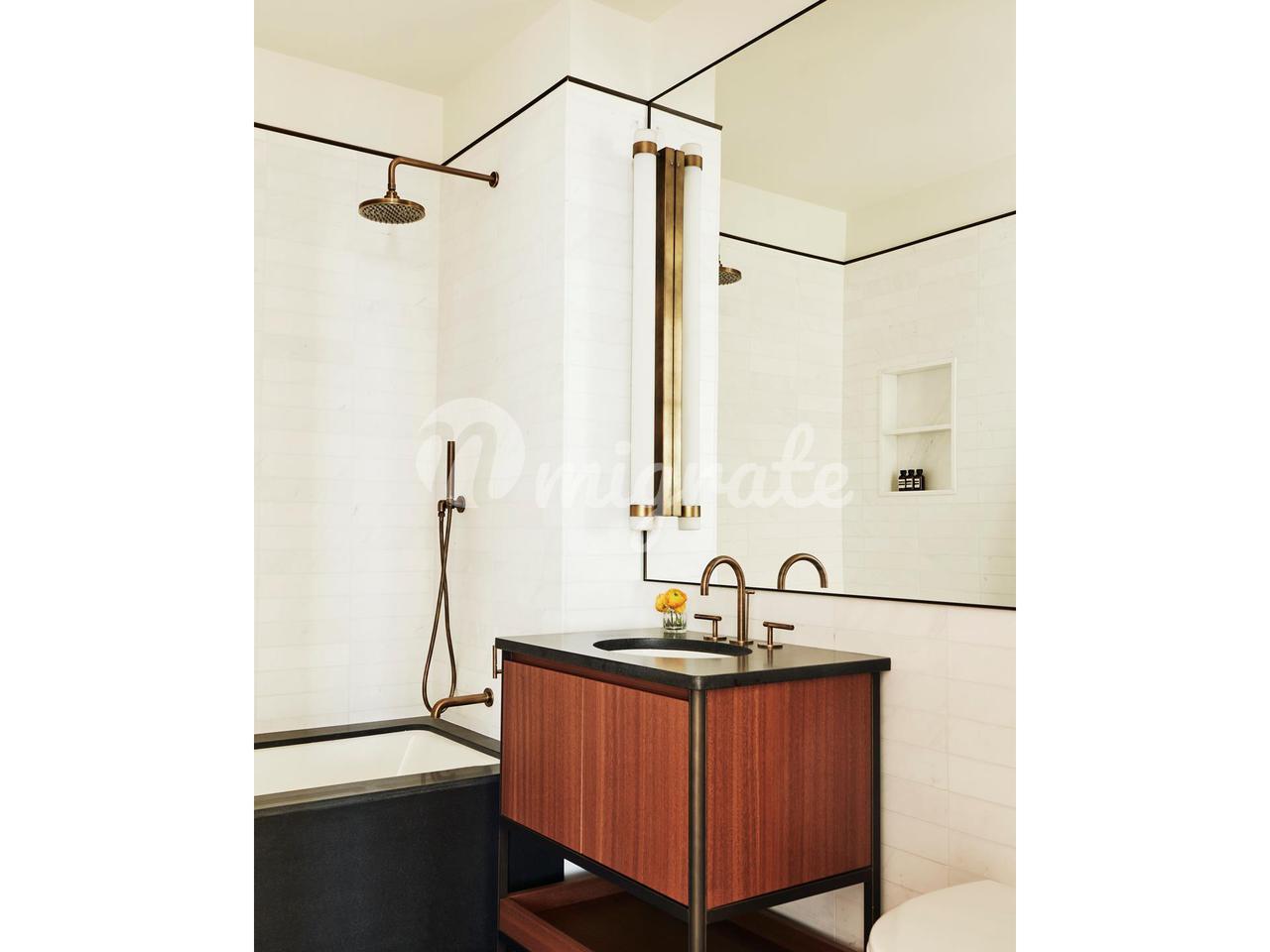 Главная спальня может похвастаться видом на запад, что является редкой точкой обзора для закатов и захватывающих дух видов на Бруклин и гавань. Просторная гардеробная обеспечивает достаточно места для хранения вещей. В главной ванной комнате с четырьмя ванными комнатами стены отделаны выразительным мрамором Breccia Capria, дополненным абсолютно черным гранитом и белым мрамором Bianco Dolomite с шестиугольным рисунком. Изготовленный на заказ туалетный столик из светлого красного дерева с абсолютно черной гранитной столешницей, сантехникой Waterworks, выполненной на заказ из латуни, и встроенными бра из рифленого стекла. Познакомьтесь с лучшими достопримечательностями Бруклина, где непревзойденный дизайн сочетается с непревзойденными видами.