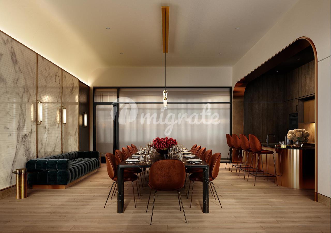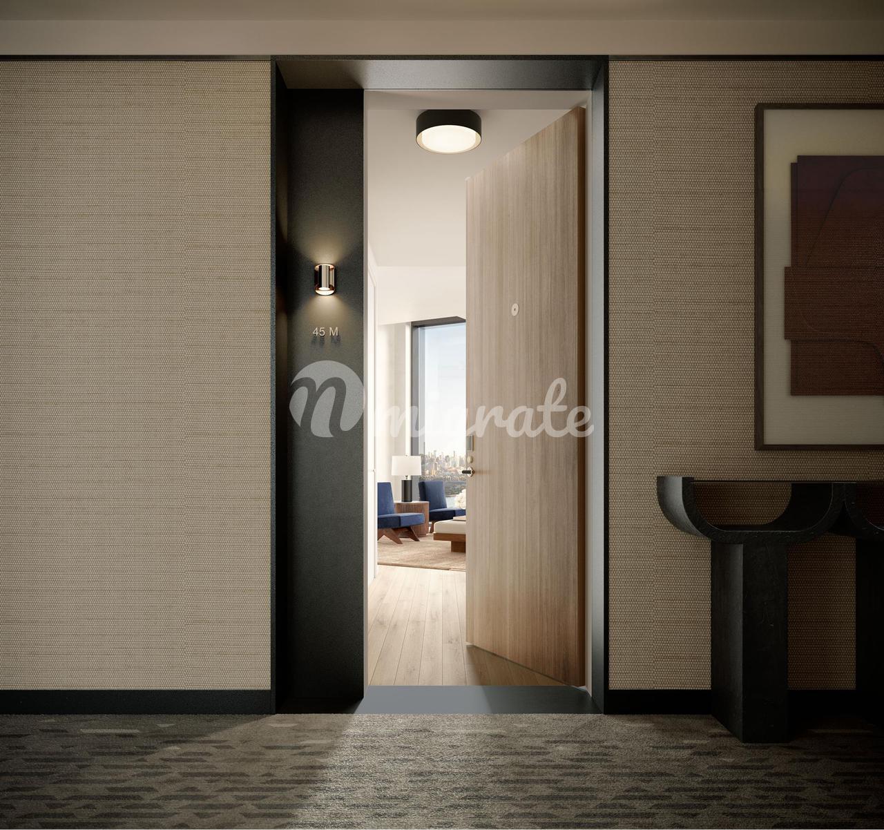 Спроектированный с умыслом, с высотой потолков до 11 футов и окнами от пола до потолка, Residence 69G отличается обилием необыкновенного естественного света и потрясающим видом на город и воду. Официальное фойе переходит в впечатляющую угловую большую комнату, откуда открывается двойная южная и западная экспозиция. Многослойные материалы, такие как красное дерево, старинная натертая бронза и полы из белого дуба, окрашенные по индивидуальному заказу в медовый цвет, дополняют теплый и уютный интерьер. Центральное место в большой комнате занимает исключительно продуманная открытая кухня, спроектированная студией Gachot Studios, с поразительным графитово-матовым черным корпусом и зеркальной отделкой из травленой бронзы, зеркальной задней панелью из полированной бронзы и столешницами из абсолютно черного гранита. Полностью интегрированный набор бытовой техники Miele и сантехнических приспособлений для водопровода, выполненных на заказ из латуни, дополняет исключительный опыт.