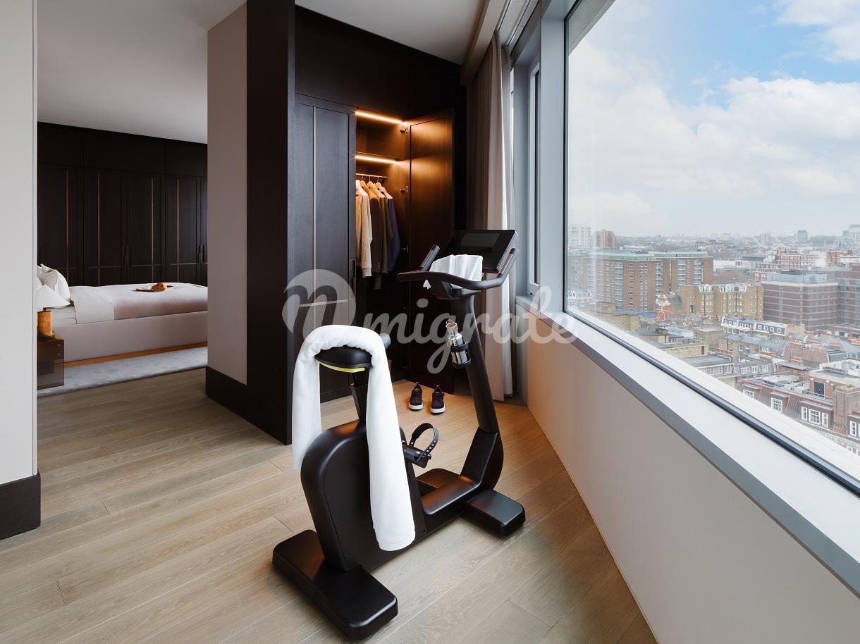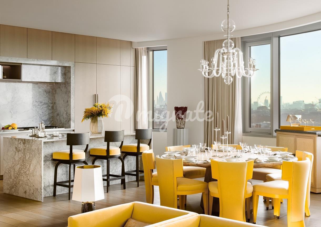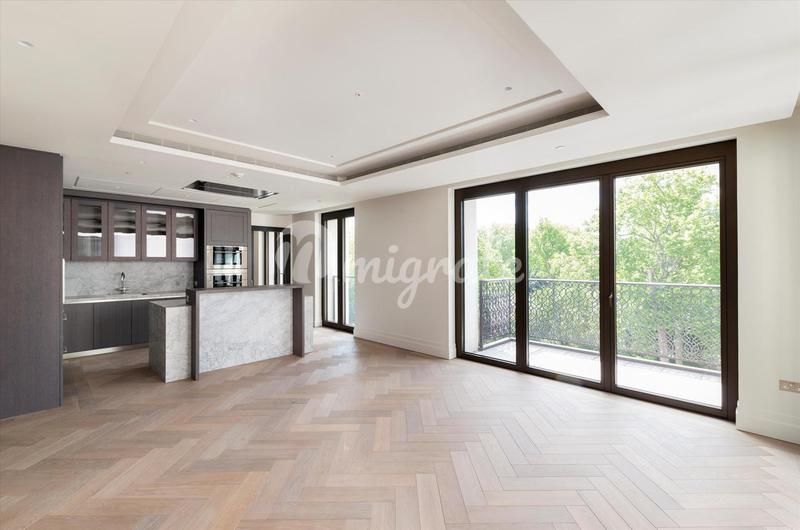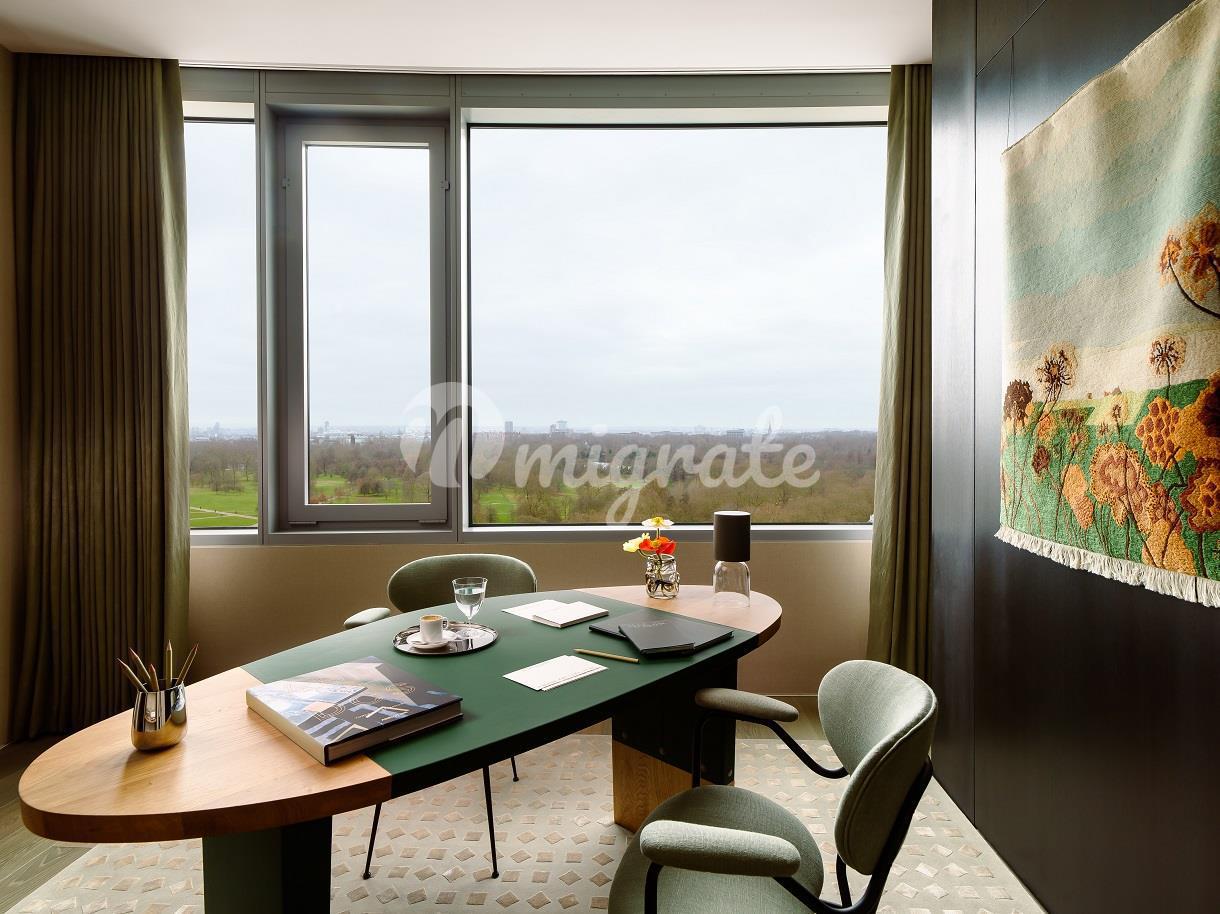 Расположенные на 11 этаже, эти просторные апартаменты с тремя спальнями и кабинетом предлагают 2923 кв. фута роскошной жизни и могут похвастаться панорамным видом на Королевский Гайд-парк и город. Была выбрана самая символичная мебель, изготовленная по заказу British talent специально для квартиры студией Дэвида Коллинза, чтобы создать предметы на заказ. Пространство - это высшая городская роскошь, и эта квартира отличается необычайно широкими пропорциями потолков высотой 3 метра. -
