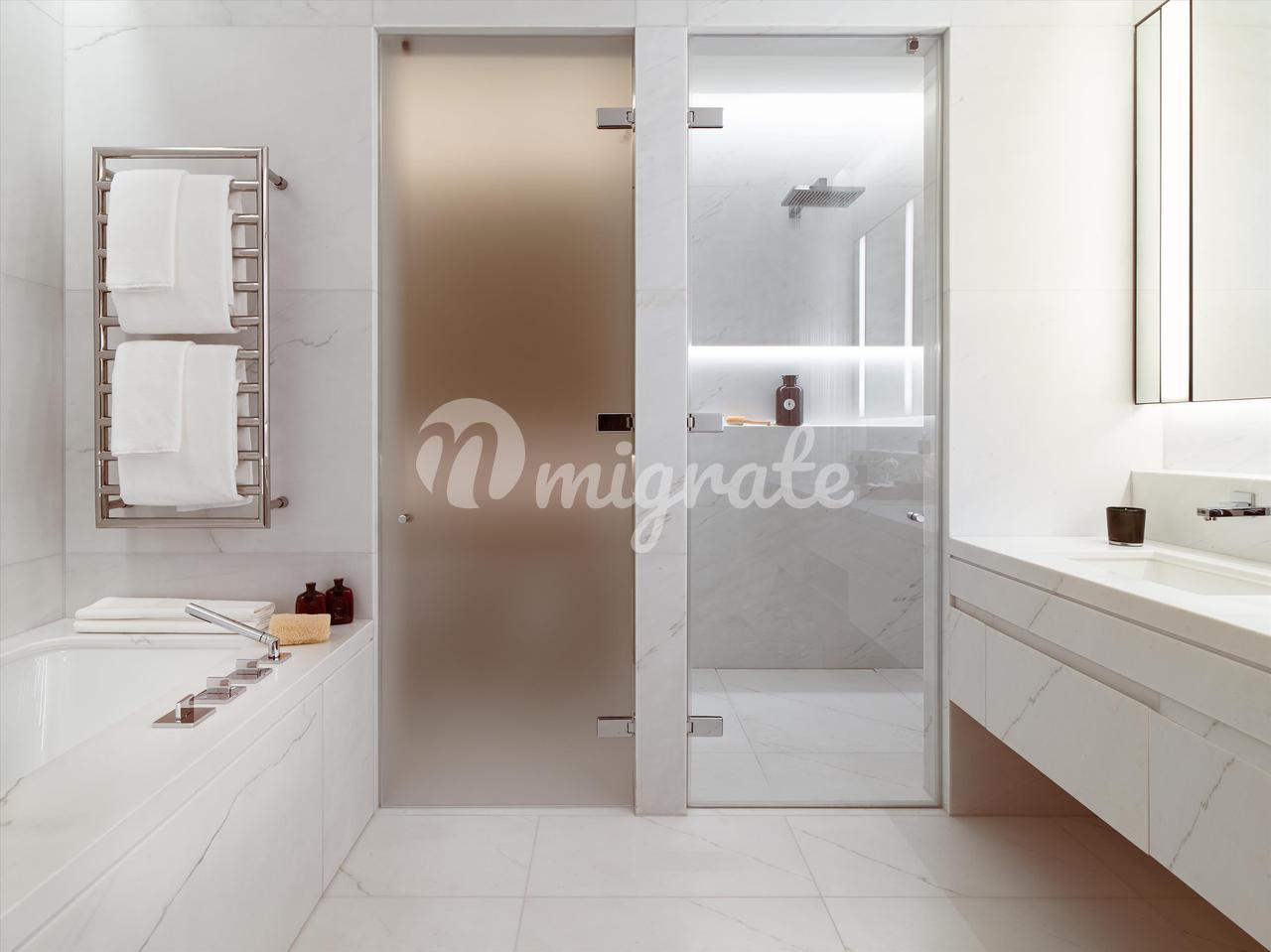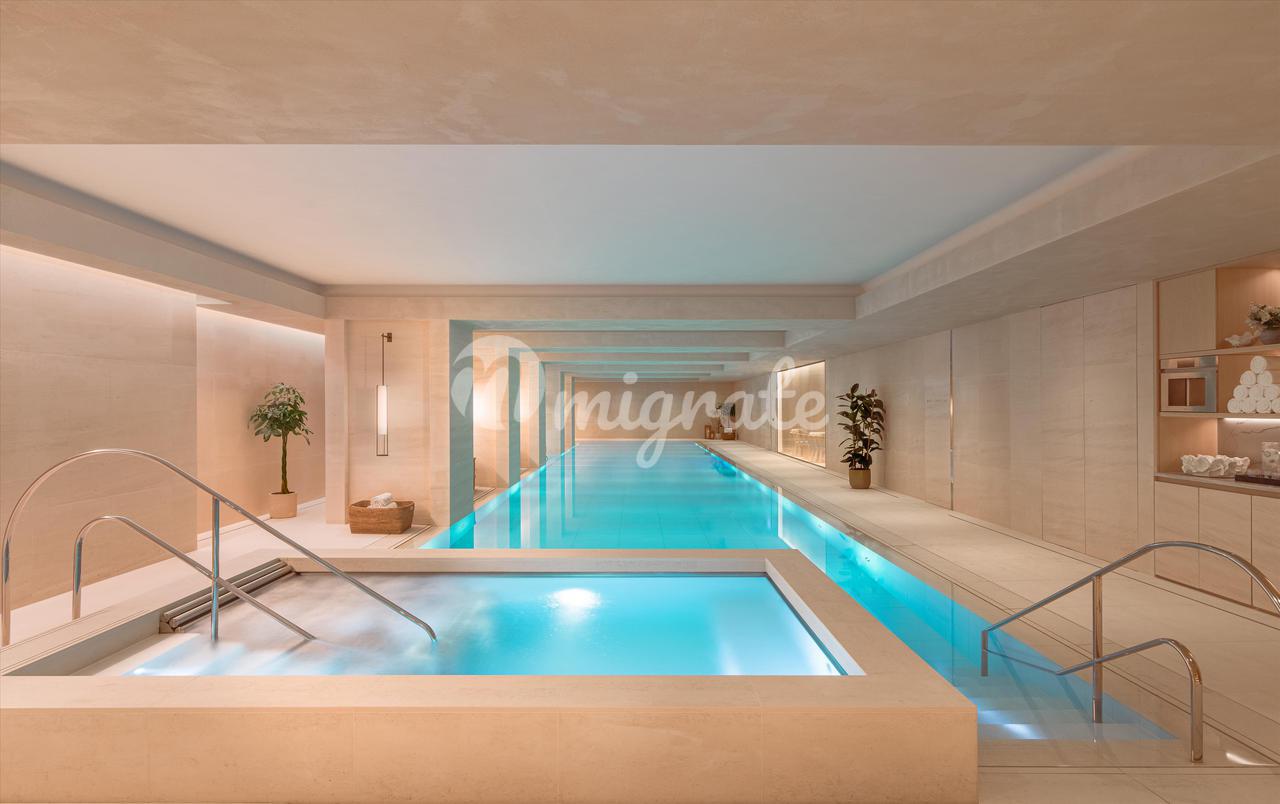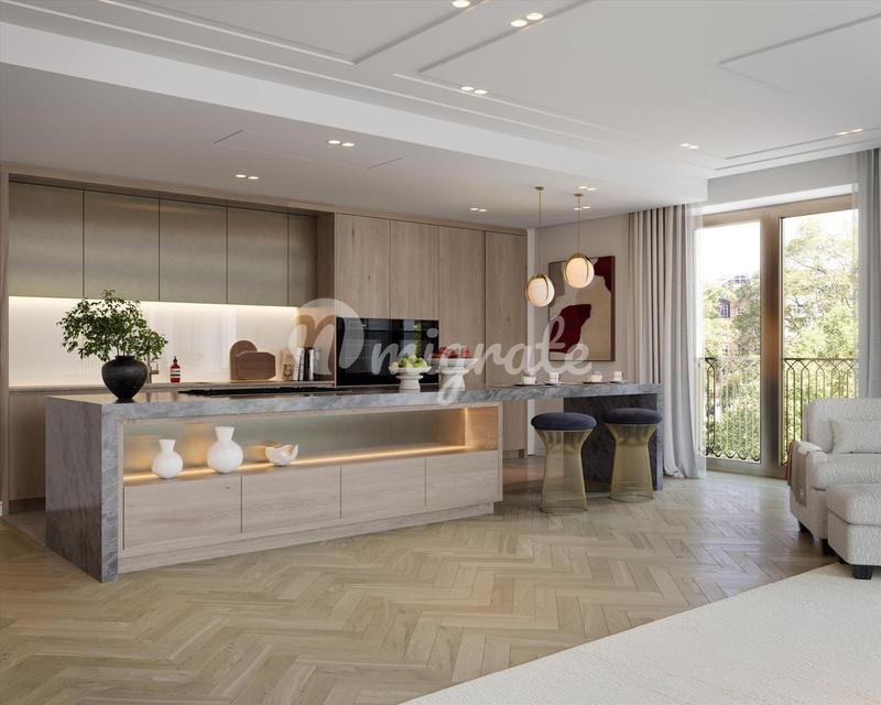 Расположенные на 11 этаже, эти просторные апартаменты с тремя спальнями и кабинетом предлагают 2923 кв. фута роскошной жизни и могут похвастаться панорамным видом на Королевский Гайд-парк и город. Была выбрана самая символичная мебель, изготовленная по заказу British talent специально для квартиры студией Дэвида Коллинза, чтобы создать предметы на заказ. Пространство - это высшая городская роскошь, и эта квартира отличается необычайно широкими пропорциями потолков высотой 3 метра. -