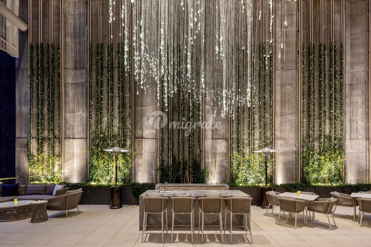 71-этажный отель Centrale занимает свое место рядом с самыми культовыми зданиями в центре Манхэттена, охватывая коллекцию из 124 классических, но, несомненно, современных резиденций, спроектированных Champalimaud Design. Дизайн экстерьера Centrale, разработанный Pelli Clarke Pelli Architects, основан на классической архитектуре ар-деко с продуманными современными элементами, в том числе слегка отражающим стеклянным фасадом, украшенным терракотовыми шевронами. Centrale раскрывает свое основание, корпус и корону от улицы к небу с помощью хрустальных переходов, создавая динамичный ритм угловых отражений окружающего пейзажа центра города.