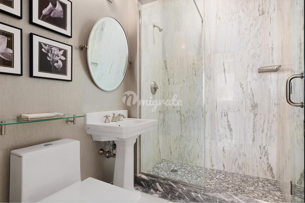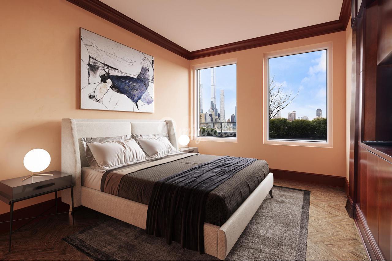 Основная спальня имеет большие размеры и имеет стену с окнами, выходящими на западную сторону, что обеспечивает отличное естественное освещение. В просторной ванной комнате, отделанной мрамором, есть панорамное окно, а в большом встроенном шкафу достаточно места для хранения вещей. Вторая спальня также выходит окнами на запад и располагает полностью оборудованной ванной комнатой. Третья спальня уникальна своим эркером с двойной экспозицией и собственной ванной комнатой.