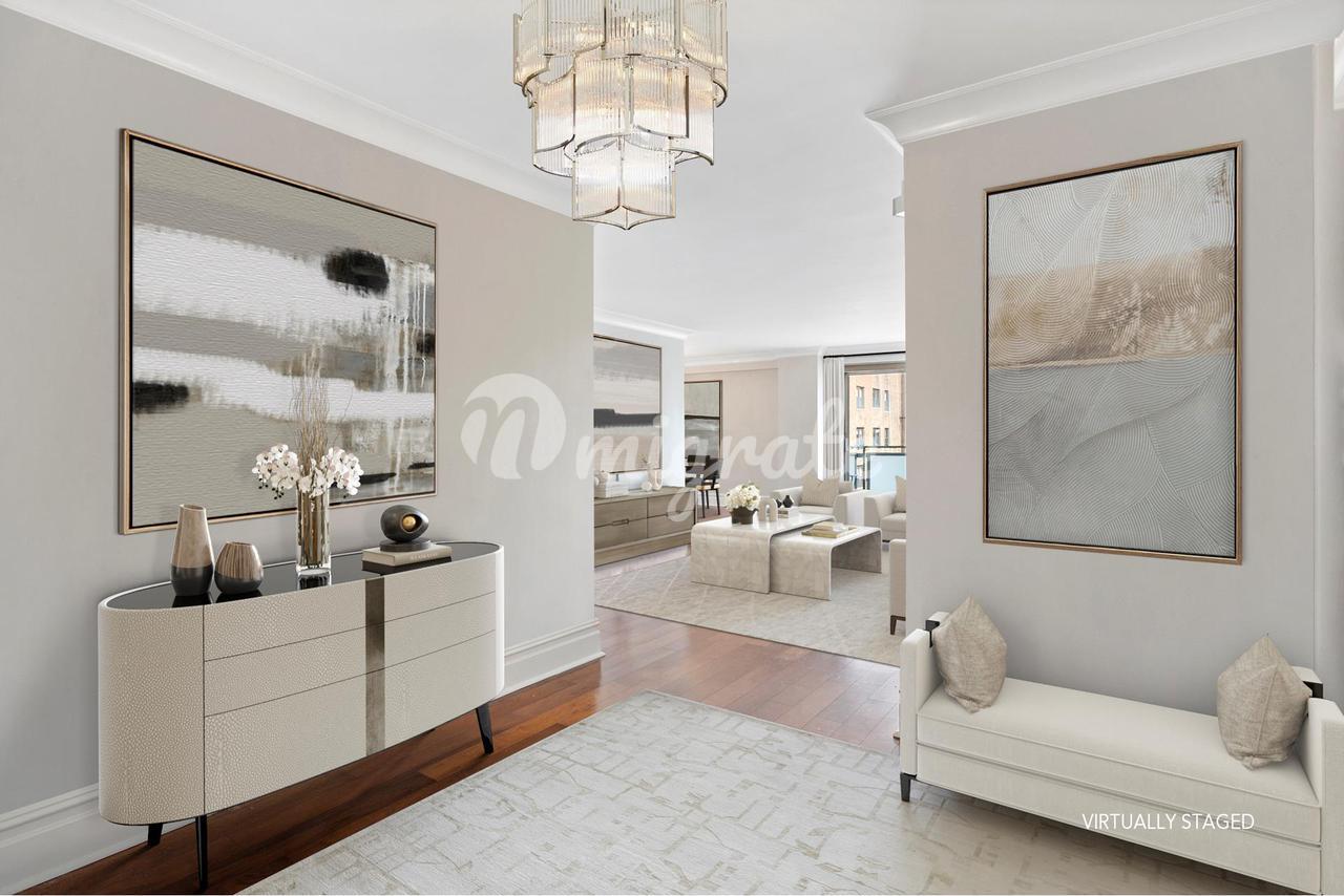 Отремонтированный залитый солнцем кабриолет с тремя спальнями, двумя ванными комнатами и террасой в роскошном кондоминиуме Midtown с полным спектром услуг. Эти просторные апартаменты располагают большой гостиной с отдельной обеденной зоной, идеально подходящей для приема гостей. Отремонтированная кухня с окнами предлагает изящную деревянную мебель, столешницы из черного гранита, приборы из нержавеющей стали и достаточно места для хранения. В первом люксе удобно размещается кровать размера «king-size» и есть элегантная ванная комната. Вторая спальня с кроватью размера "king-size" также предлагает большой встроенный шкаф. Добавьте к этому вторую выложенную плиткой ванную комнату, изящную прихожую, холодильник для вина, 4-дюймовый паркет и вид на город из каждой комнаты квартиры. Черчилль — это кондоминиум с полным набором услуг, в котором действуют правила кондоминиума. Удобства в здании включают швейцара, консьержа, великолепную террасу на крыше, открытый бассейн, прачечную на каждом этаже, гостиную, комнату для велосипедов и гараж на территории. Инвесторы, субаренда и домашние животные разрешены (до 30 фунтов для собак).