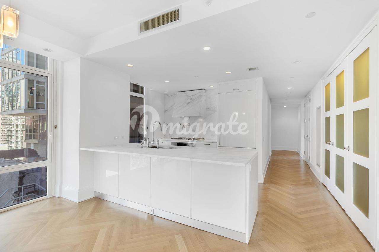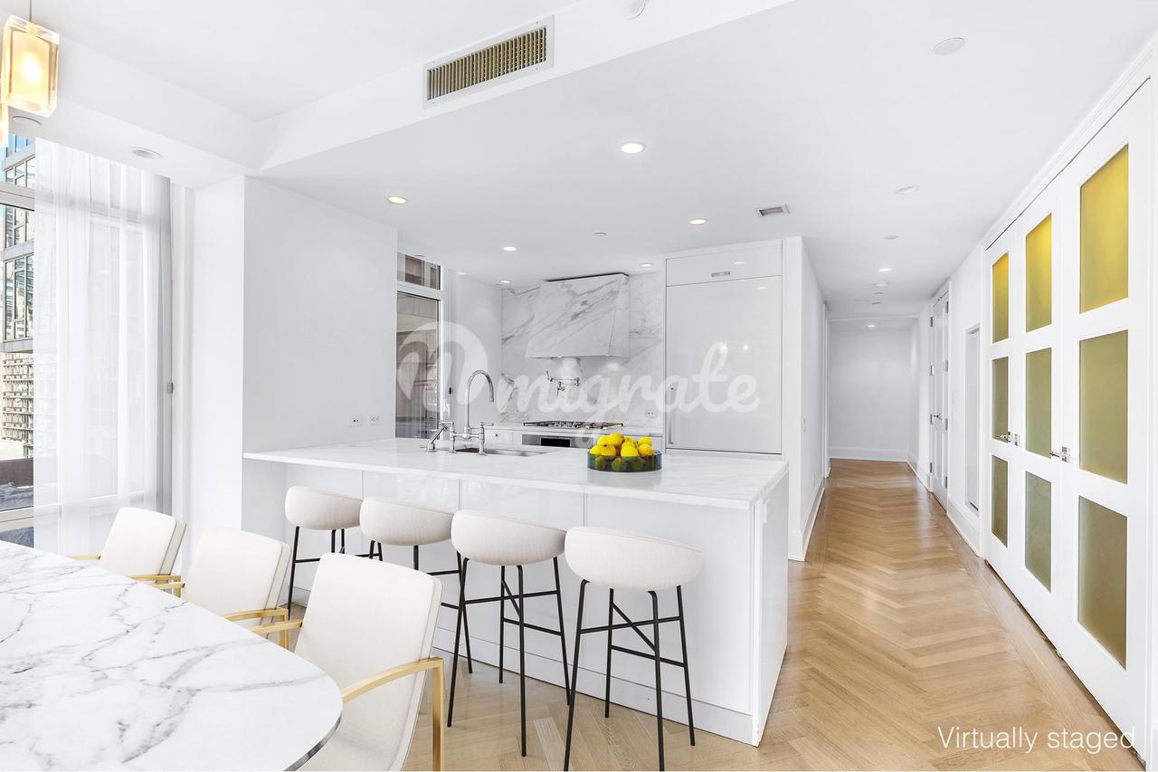 Этот бутик-кондоминиум располагает дубовыми полами в елочку и открытой кухней шеф-повара, отделанной каррарским мрамором и бытовой техникой Miele suite с плитой на пять конфорок и полностью встроенным холодильником.