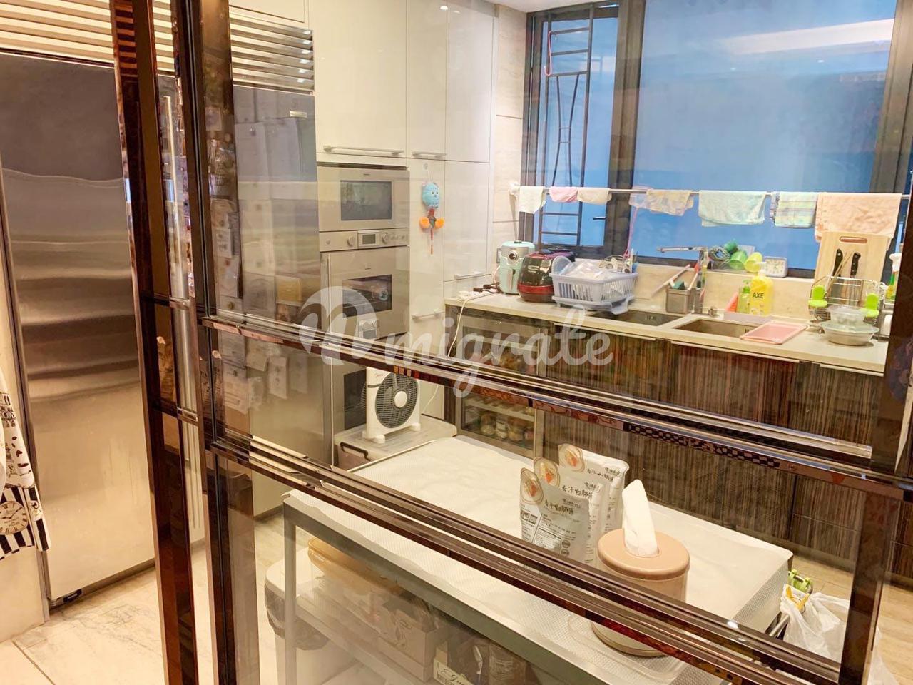 Современные апартаменты средней этажности с балконом и видом на город. 4 спальни (3 с ванными), 4 ванные комнаты, просторная гостиная и столовая, полностью оборудованная кухня и комната для прислуги. Расположен рядом с парком Коулун Цай и недалеко от станции метро Lok Fu.