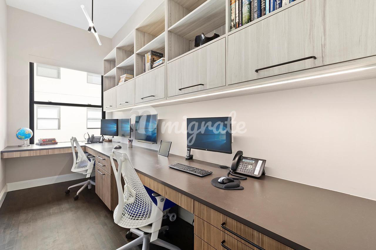 Главная спальня имеет две экспозиции и роскошную гардеробную. Рядом с главной спальней находится домашний офис с индивидуальными окнами и встроенными столами. Массивная ванная комната отделана гранитом и доломитовым мрамором, фурнитурой Zucchetti, лучистым теплом, бескаркасным стеклянным паровым душем с двумя душевыми головками и боковыми форсунками, очень глубокой ванной для купания, индивидуальным туалетным столиком и отдельным туалетом.