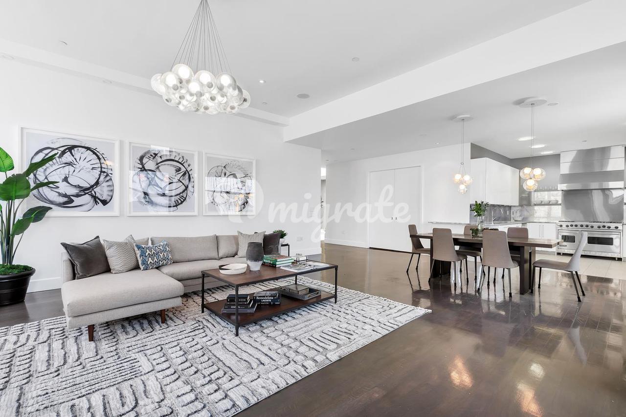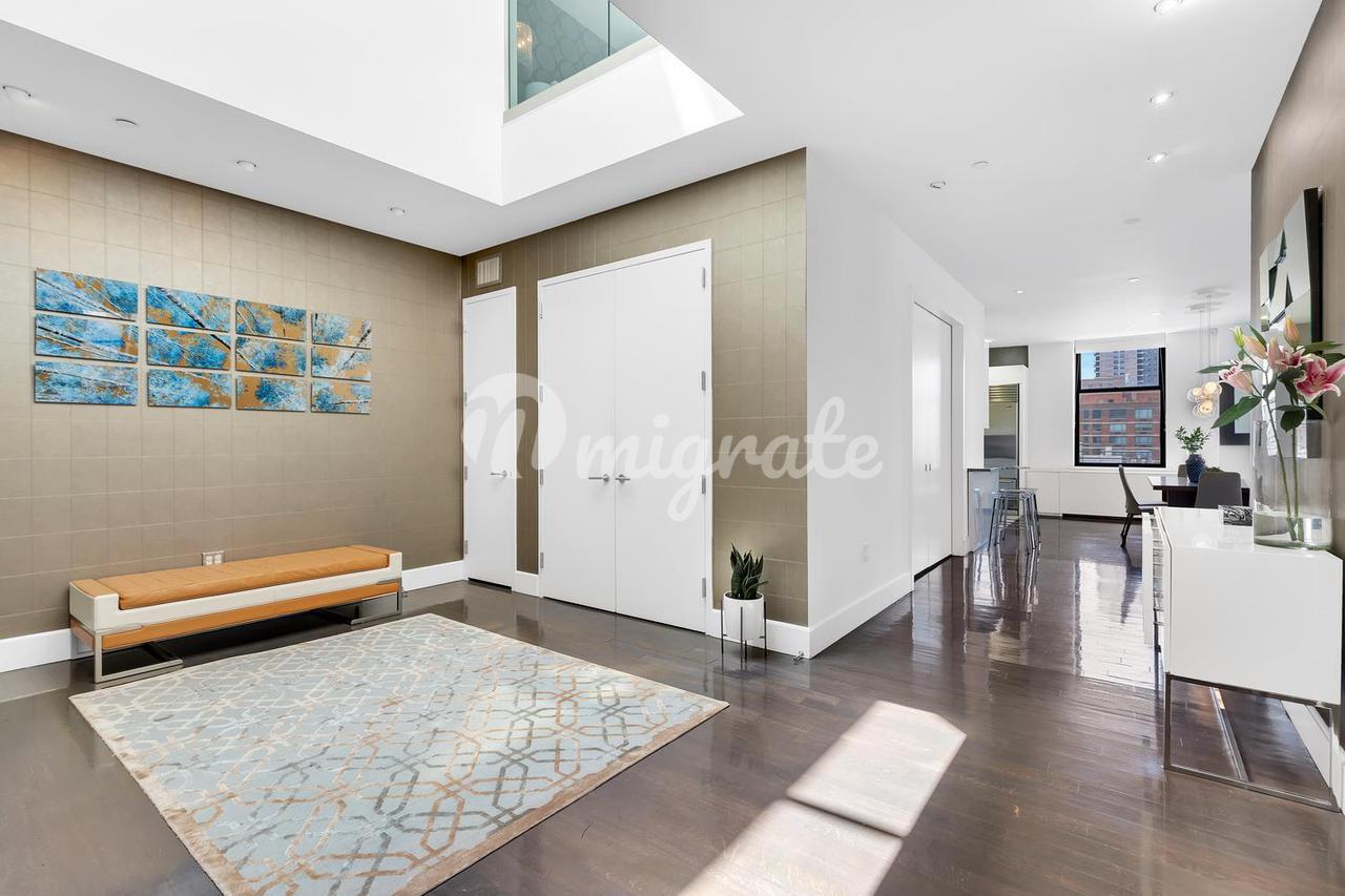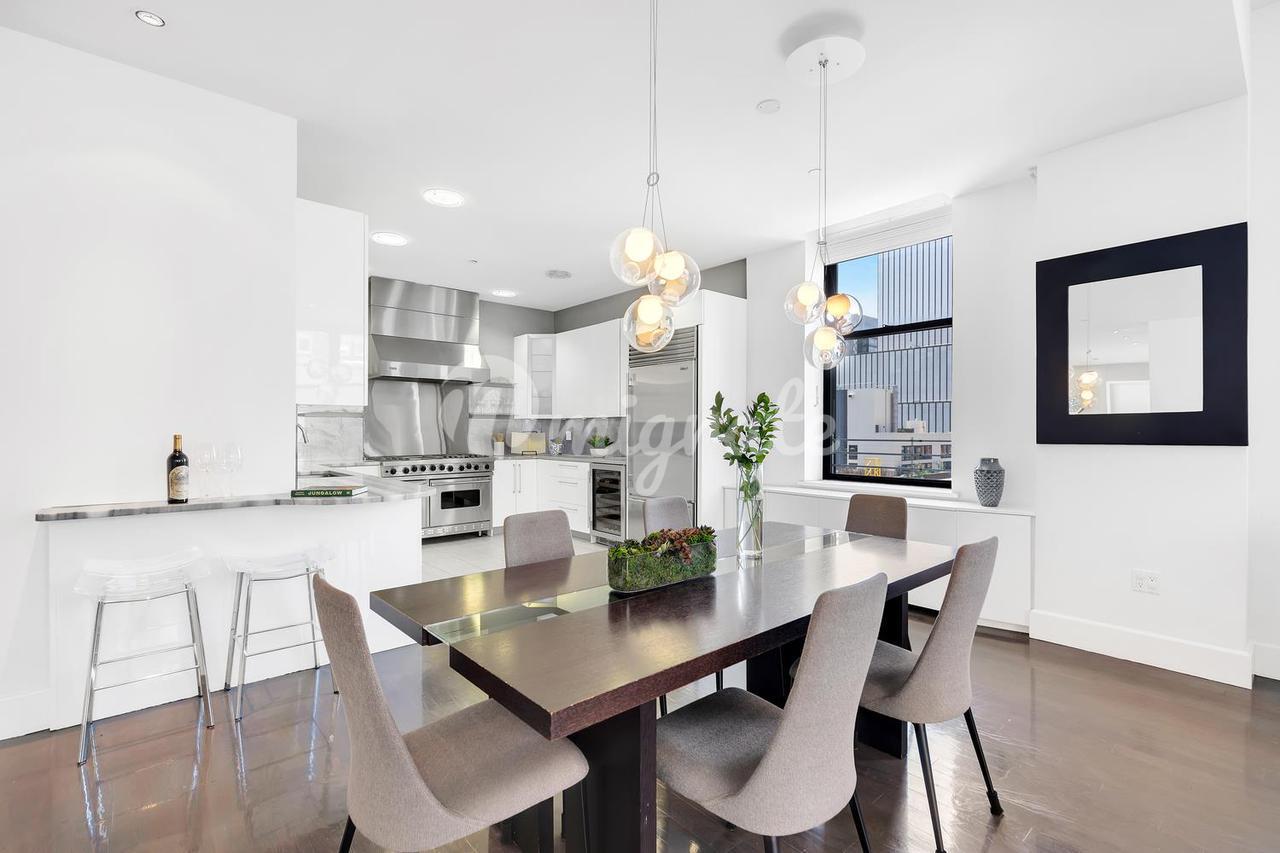 СОВЕРШЕНСТВО ПЕНТХАУСА - КРУГЛАЯ ТЕРРАСА НА КРЫШЕ И ПАРКОВКА! Penthouse D - это экстраординарное воплощение элегантного, инновационного и современного дизайна. Вас ждет двухуровневое угловое святилище с 3 спальнями и 3 ванными комнатами, высокими потолками и террасой на крыше площадью 1500 кв. футов. На этой впечатляющей террасе для загара на крыше есть гриль для барбекю, две зоны отдыха и баскетбольное кольцо, откуда открывается захватывающий панорамный вид на город. Развлечения проходят гладко и стильно в большой комнате, которая с комфортом вмещает просторную гостиную и столовую. Безупречно оформленная кухня шеф-повара представляет собой настоящее произведение искусства с изготовленной на заказ мебелью, плитой Viking на 6 конфорок, холодильником Sub-Zero, посудомоечной машиной Bosch и винным холодильником. Воплощение шика, просторный люкс с основной спальней также располагает ванной в стиле дзен, которая порадует вас двойной встроенной раковиной, глубокой ванной для купания и отдельным душем. Еще две спальни, тихие и удобные, плюс кабинет тоже находятся на этом уровне. Блестящие деревянные полы, большие шкафы, стиральная машина с сушилкой и выделенное место для хранения вещей (484 кв. фута) дополняют эту невероятную резиденцию. Выделенное парковочное место включено в стоимость!