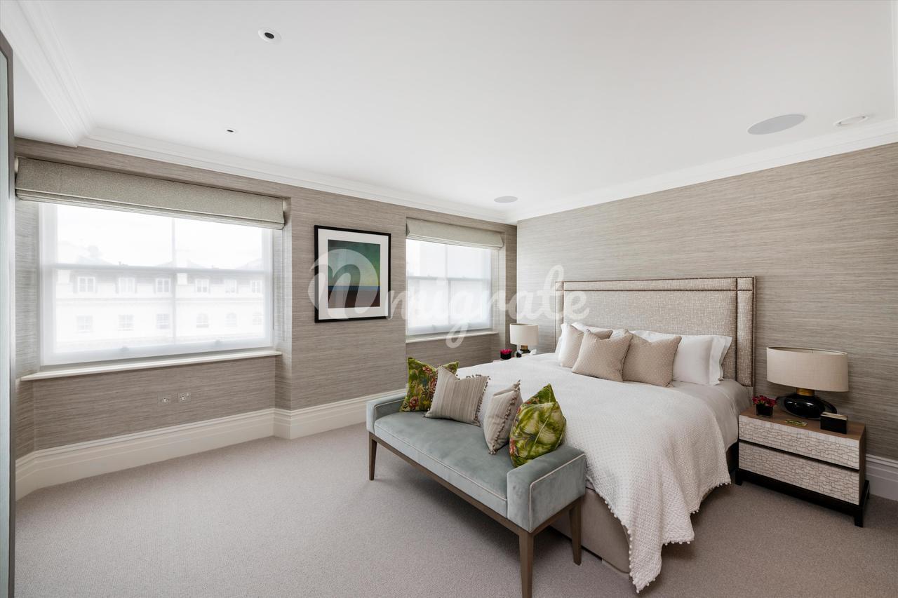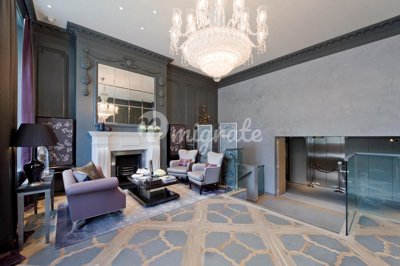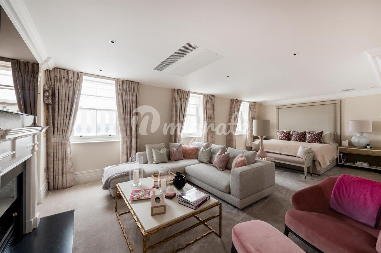 В этих потрясающих апартаментах есть уютная прихожая, просторная приемная, столовая с каминами и 6 большими окнами с видом на Гайд-парк. Существует также современная полностью встроенная кухня / зал для завтраков, подсобное помещение и гардеробная для гостей.