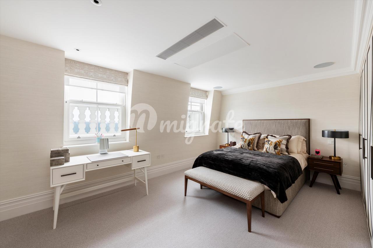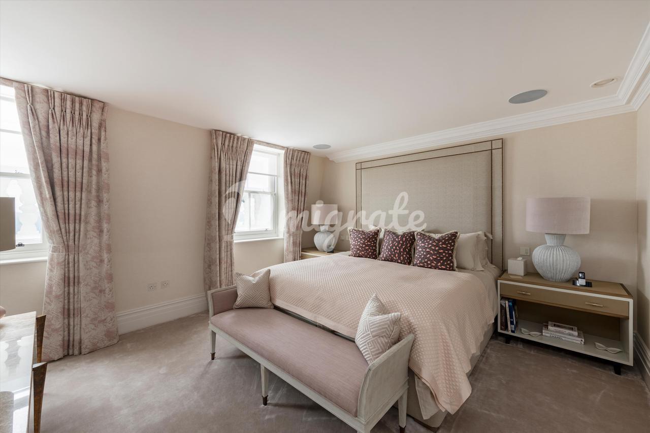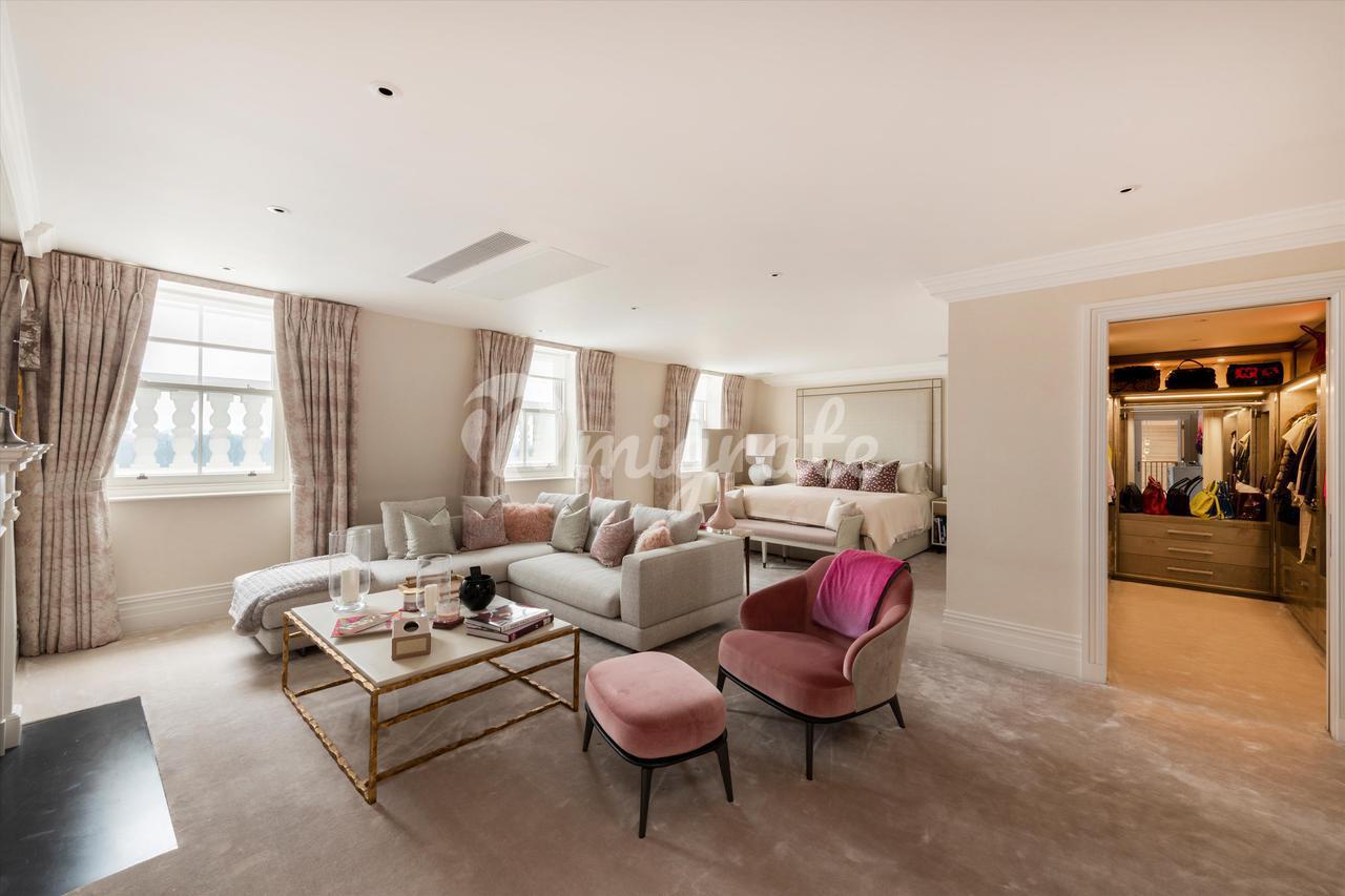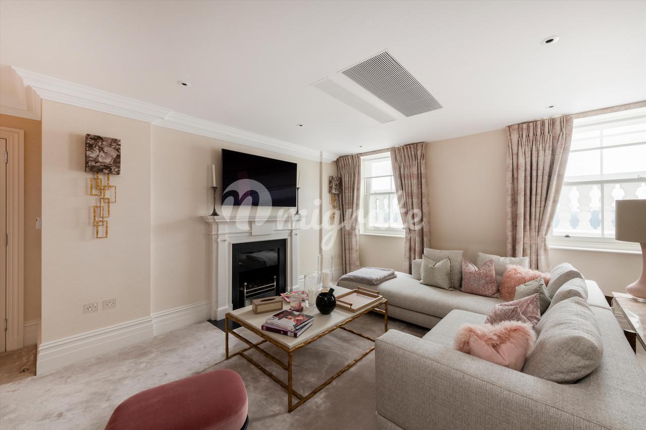 В этих потрясающих апартаментах есть уютная прихожая, просторная приемная, столовая с каминами и 6 большими окнами с видом на Гайд-парк. Существует также современная полностью встроенная кухня / зал для завтраков, подсобное помещение и гардеробная для гостей.