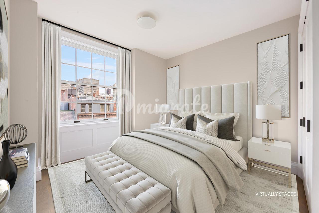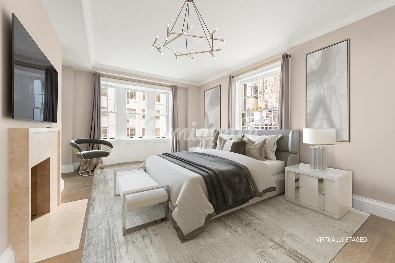 Основная спальня с собственным дровяным камином и спокойным южным видом на Восточную 68-ю улицу является особой изюминкой, а также окном, выходящим на запад, с видом на собственный вход во внутренний двор отеля Marquand. Два больших шкафа находятся в самой спальне, а внутренний коридор люкса ведет как в ванную комнату с окном, так и в гардеробную с окном размером почти с комнату. В основной ванной комнате есть две раковины и глубокая ванна с душевой кабиной. В нем есть мраморные столешницы и элегантная плитка.