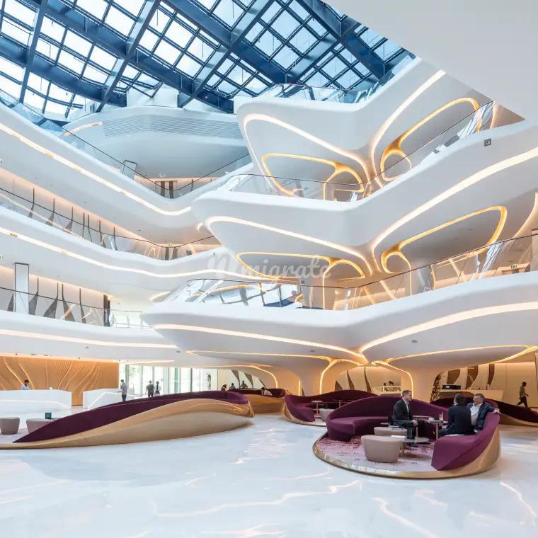 “Здание, которое никогда не спит” полностью спроектировано самым дальновидным архитектором дамой Захой Хадид, что является празднованием ее экстраординарной работы, отражающей ее творческий склад ума в демонстрации видения, навыков и привлекательных дизайнов, а также ее таланта в начале эволюции в области архитектуры.