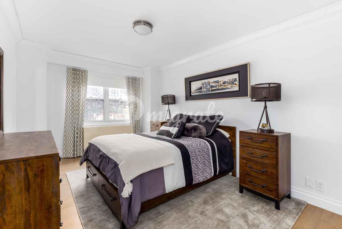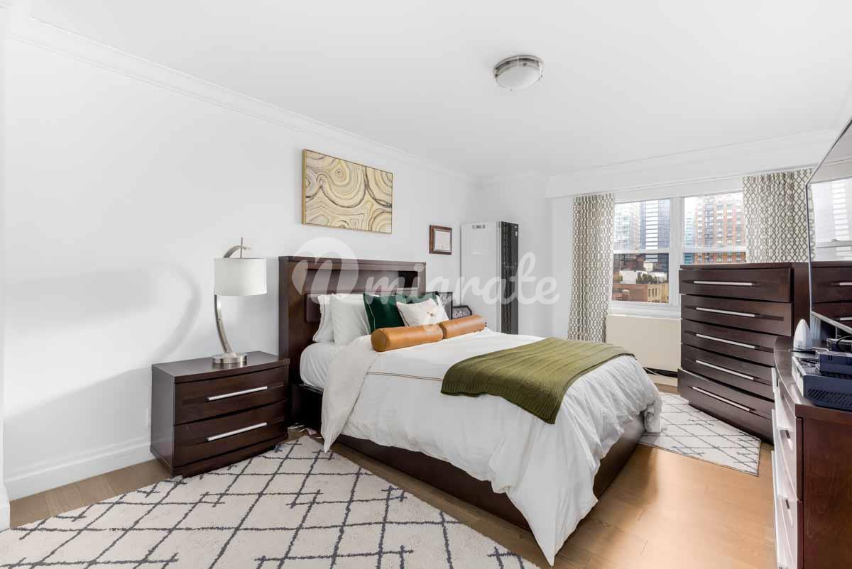 Добро пожаловать в 14C в The Revere! Эта просторная угловая квартира с 2 спальнями и 2 ванными комнатами (трансформируемая в 3), расположенная на 14 этаже, предлагает великолепный вид на горизонт Нью-Йорка и много солнечного света по всей квартире с деревянными полами. В обеих комнатах могут быть установлены кровати размера "king-size" и дополнительная мебель. В квартире есть вместительный шкаф-купе, складываемый туалет Bosch и центральный кондиционер.