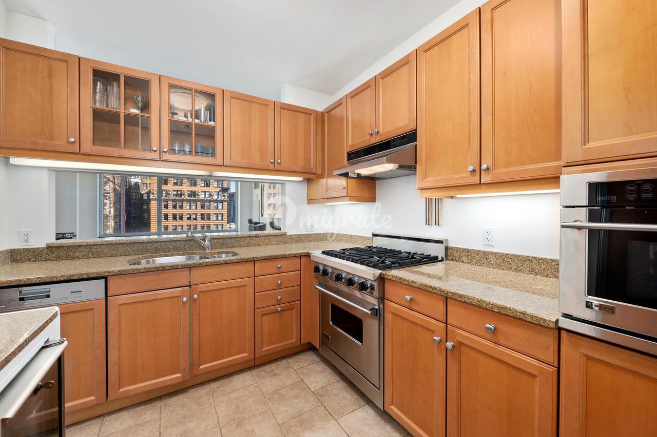20D прекрасно спланирован, с глубоким шкафом и отделанной мрамором дамской комнатой рядом с прихожей. Холл ведет в просторную гостиную, выходящую окнами на восток, где деревянные полы в елочку и свет из больших окон создают ощущение тепла. Кухня шеф-повара оборудована гранитными столешницами с корпусной мебелью Poggenpohl и роскошным набором бытовой техники, включая холодильник Sub-Zero, варочную панель Viking, микроволновую печь / конвекционную печь GE Monogram, посудомоечную машину Miele и встроенный на заказ холодильник для вина.