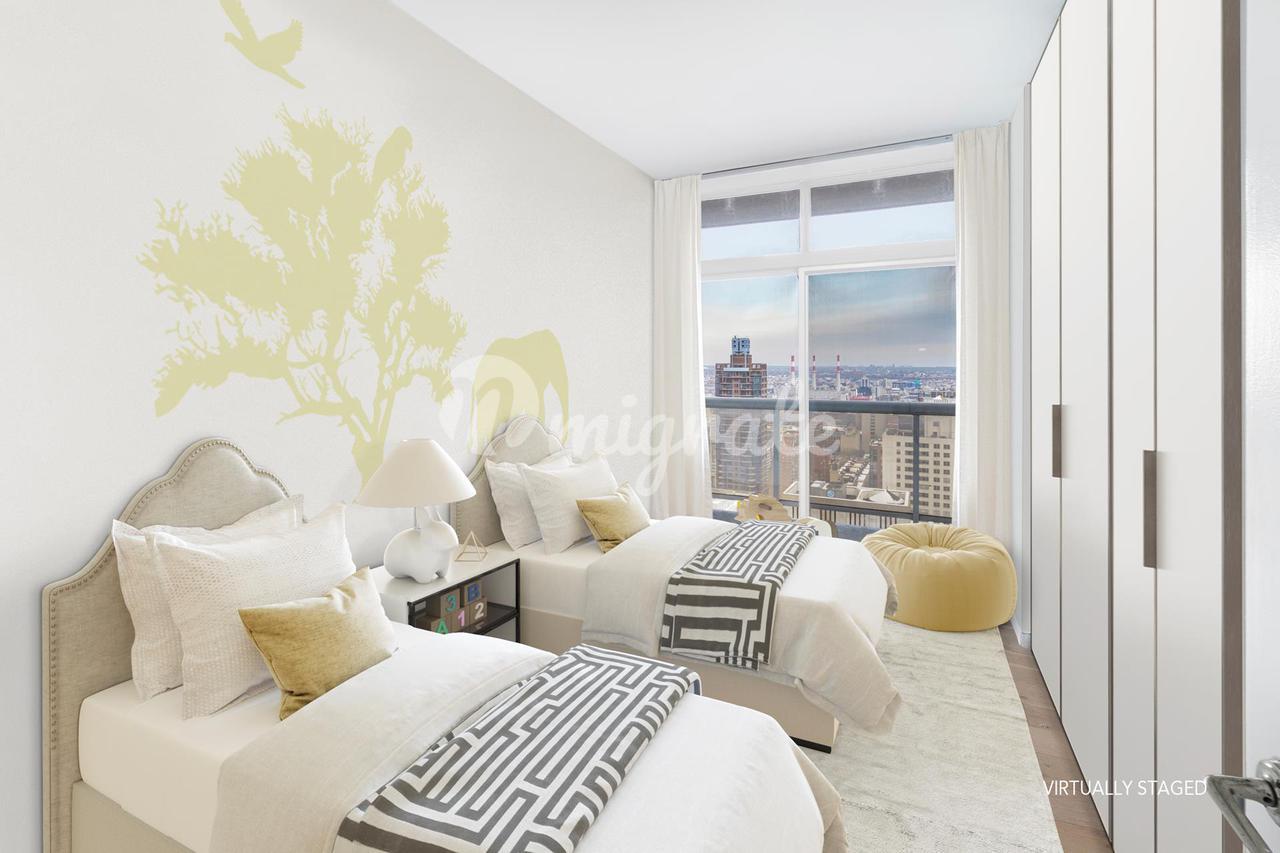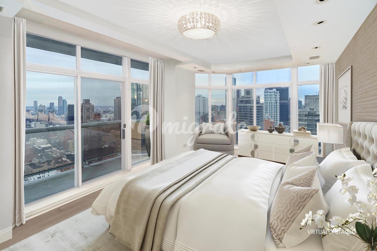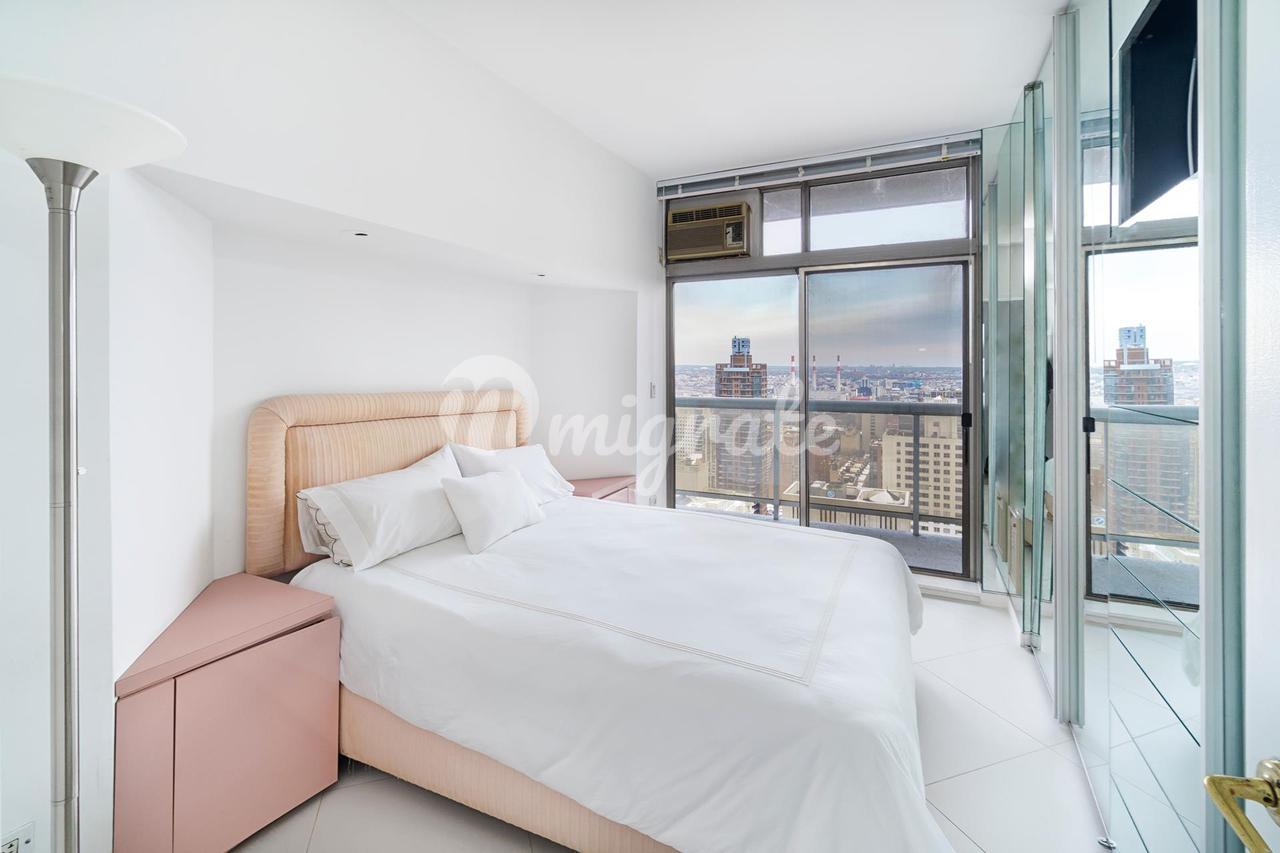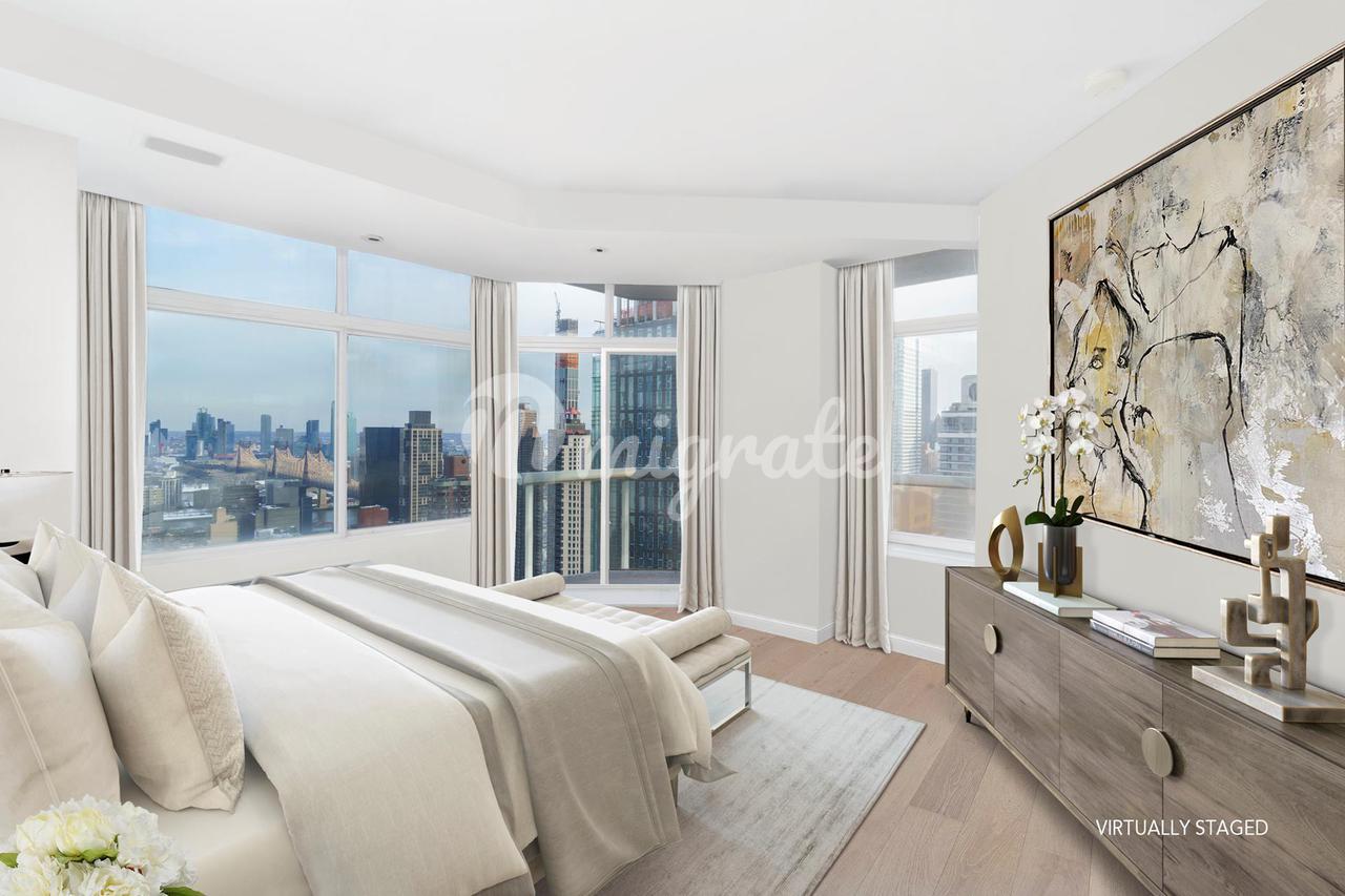 Войдите в впечатляющую почти 50-футовую гостиную с окнами от пола до потолка с широкими открытыми видами на восток, север и юг на город с 39-го этажа.