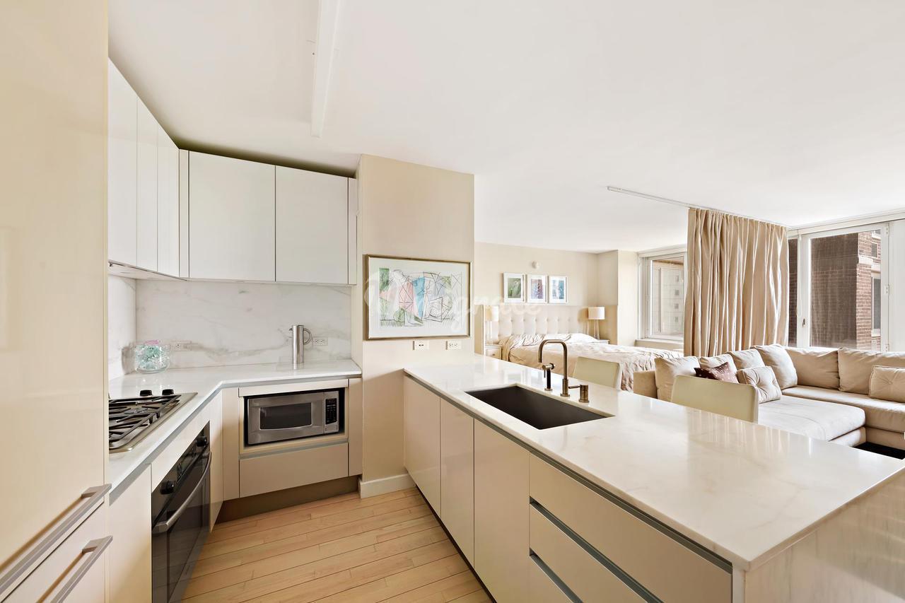 Ощутите воплощение роскоши в отеле Sheffield. Когда вы войдете, вас встретит уютное фойе с удобным шкафом для одежды. Кухня открытой планировки с обеденной барной стойкой - мечта кулинарного энтузиаста. Столешницы и задняя панель из калькуттского мрамора оснащены первоклассной бытовой техникой, включая духовку и плиту Bosch, посудомоечную машину Miele и полностью встроенный холодильник Liebherr. Мебель премиум-класса, покрытая белым лаком, подсветка под шкафом и встроенный шкаф для микроволновой печи дополняют элегантный дизайн.. В этом просторном номере есть место для Г-образного секционного дивана, кровати размера "king-size" и окна во всю стену, из которых открывается захватывающий дух вид на Центральный парк и город. Полы из скандинавского ясеня украшают квартиру, создавая теплую атмосферу. Огромная гардеробная оборудована изготовленными на заказ стеллажами и выдвижными ящиками, что обеспечивает легкую организацию. Ванная комната представляет собой святилище элегантности, отделанное мрамором, с глубоким душем и ванной, круглой раковиной, настенными смесителями и зеркалом со светодиодной подсветкой. Изготовленные на заказ стеклянные брызговики и унитаз Toto придают интерьеру нотку изысканности.