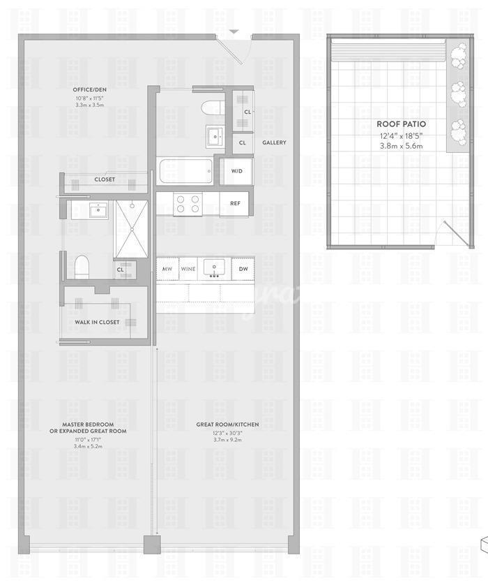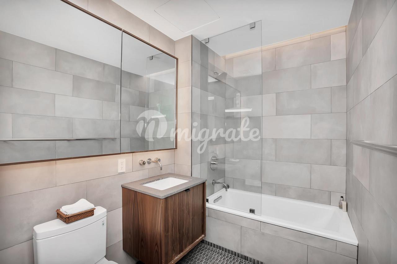 Владелец недавно установил автоматические жалюзи, которые можно поднять или опустить одним нажатием кнопки. Гостевая спальня включает в себя утопленные двери, которые можно оставить открытыми или закрытыми для уединения, а также роскошную ванную комнату с импортной ванной для купания и сантехникой Duravit/Toto. В дополнение к внутренним особенностям в квартире есть отдельная кабана на крыше размером 12,5 футов x 18,5 футов, которая прекрасно подходит для развлечений на свежем воздухе в самом сердце Манхэттена. Удобства в здании включают общую крышу, фитнес-зал со студией йоги, частное помещение для хранения велосипедов и швейцара, работающего неполный рабочий день, а также виртуального консьержа.