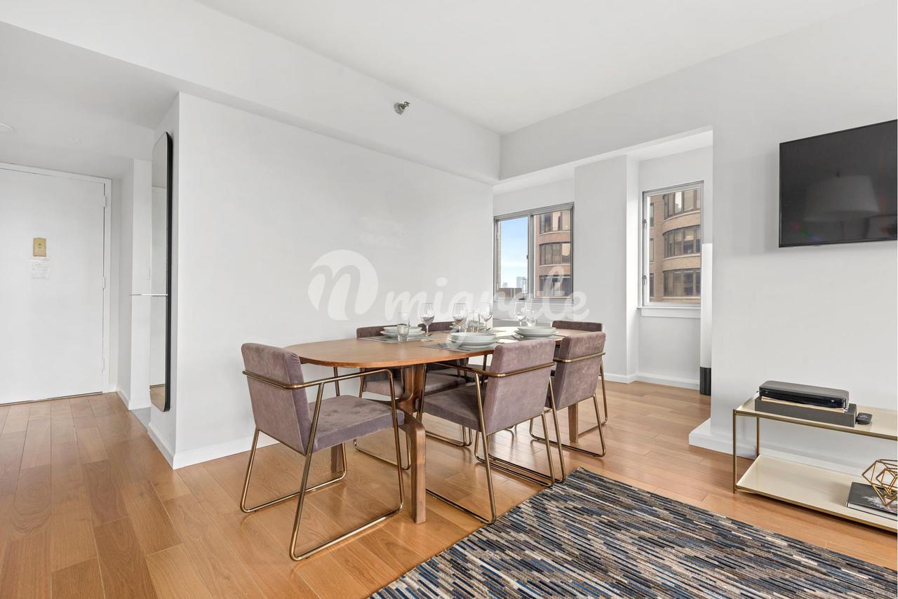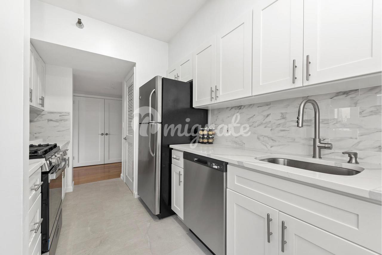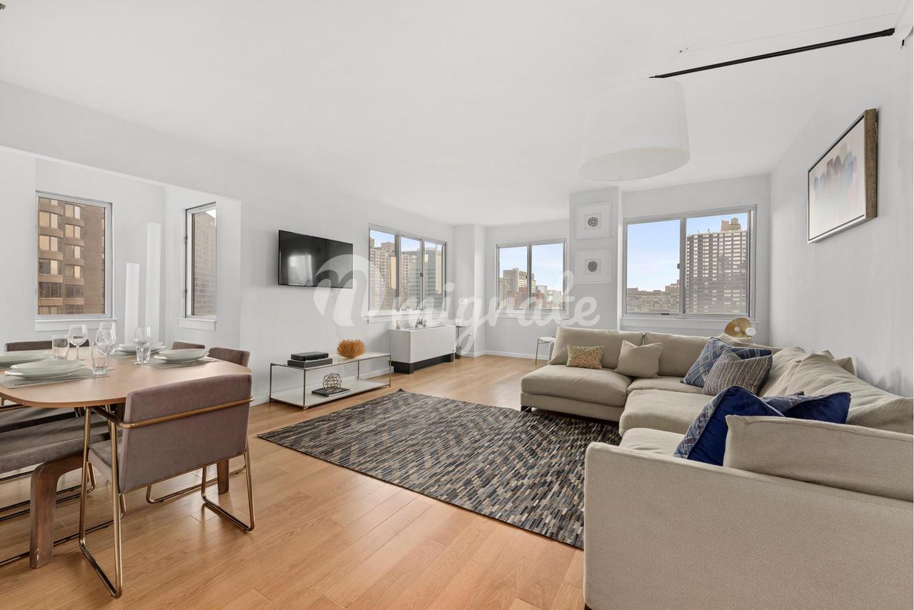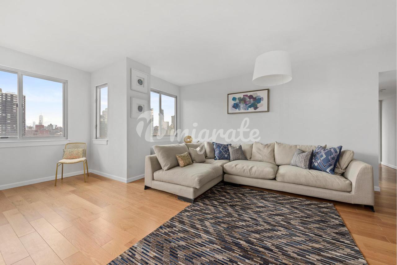 Из этого кондоминиума с двумя спальнями и двумя ванными комнатами на высоком этаже открывается потрясающий вид на город с южной, восточной и западной сторон. Из просторной гостиной и столовой открывается вид на Ист-Ривер, Нижний Манхэттен и Эмпайр-Стейт-билдинг. Кухня с окнами только что была прекрасно отремонтирована и оснащена совершенно новыми приборами из нержавеющей стали, мраморной столешницей и задней панелью, а также белыми шкафчиками на заказ. Эта кухня шеф-повара выходит в обеденный альков с окнами, который можно легко закрыть, чтобы превратить в домашний офис или детскую. Угловой основной люкс может похвастаться гардеробной, собственной ванной комнатой и потрясающим видом на Эмпайр-Стейт и центр города. Вторая спальня также просторна, с вместительным шкафом и видом на южную сторону. В этом кондоминиуме по хорошей цене есть стиральная машина / сушилка и паркетные полы во всех помещениях.
