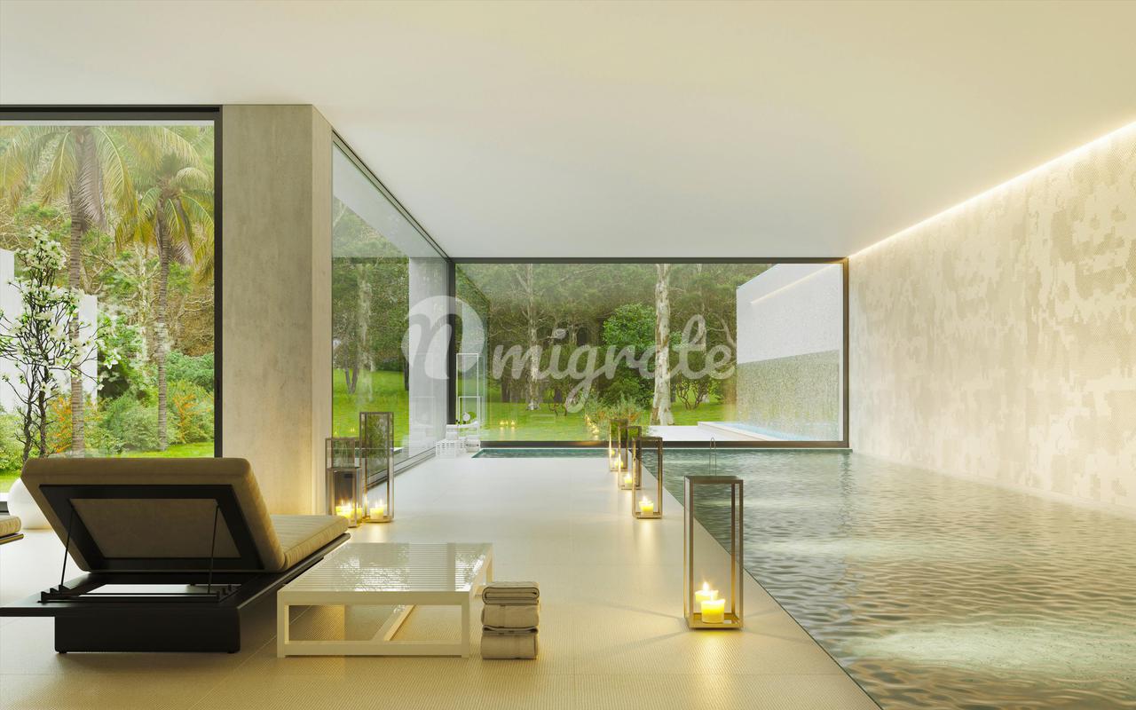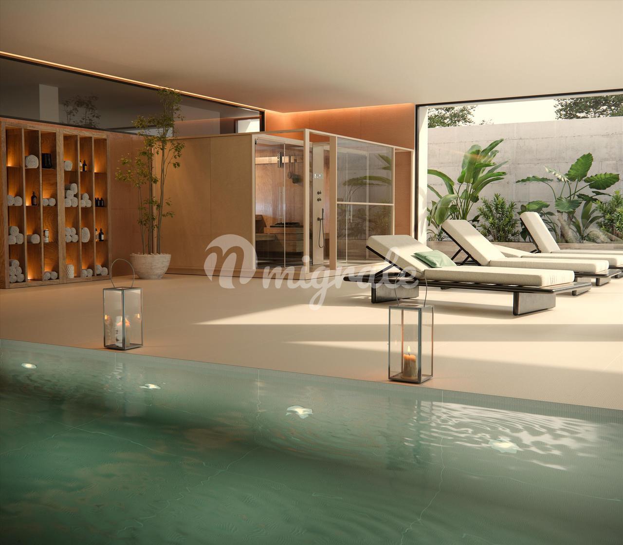 Среди общих зон - спа-центр с крытым бассейном, джакузи, сауной, турецкой баней и зоной для гамаков, большой кинозал с отдельным выходом и тренажерный зал с двумя отдельными зонами. Кроме того, в его саду мы можем найти спортивную площадку, пруд, огород и пешеходные дорожки, а также фантастический бассейн с водопадом. В отеле также есть гараж на 8 автомобилей, а также открытая гостевая парковка.