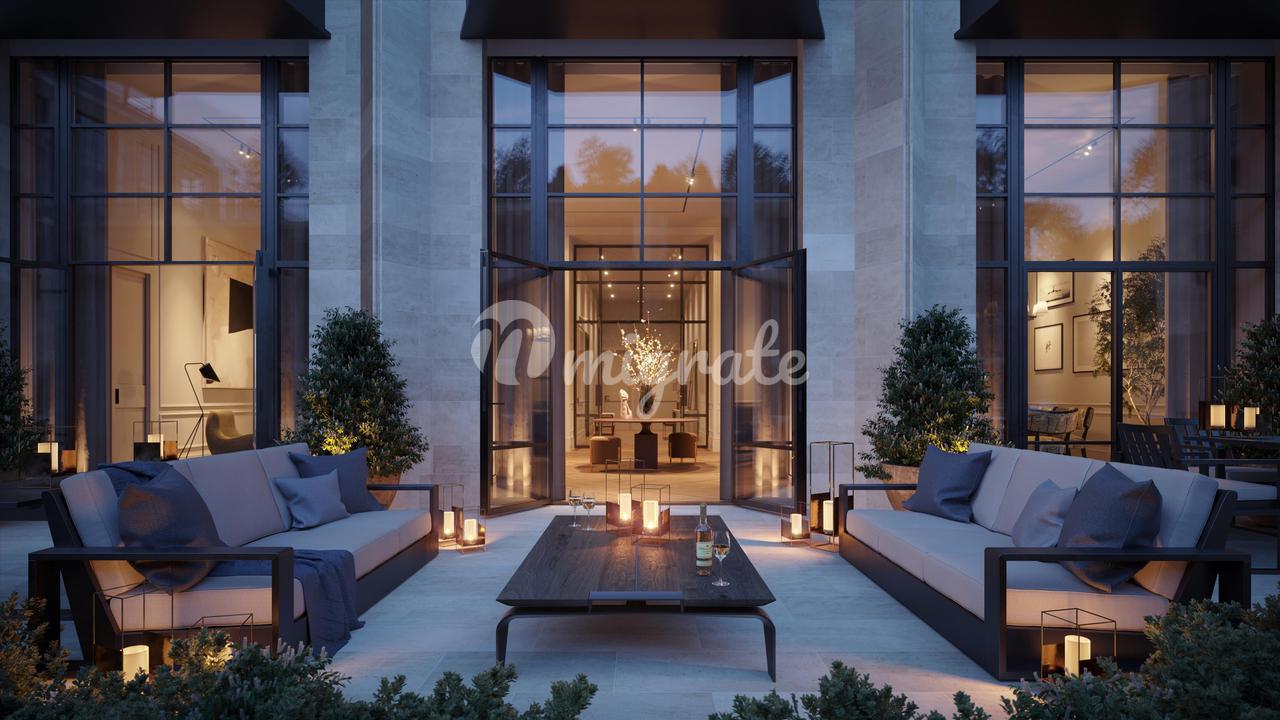 Уникальная боковая квартира с 3-4 спальнями, потолками высотой 4,2 м и жилой площадью 3485 кв.футов, включая столовую, кабинет, большую приемную с выходом на террасу площадью 584 кв.футов.