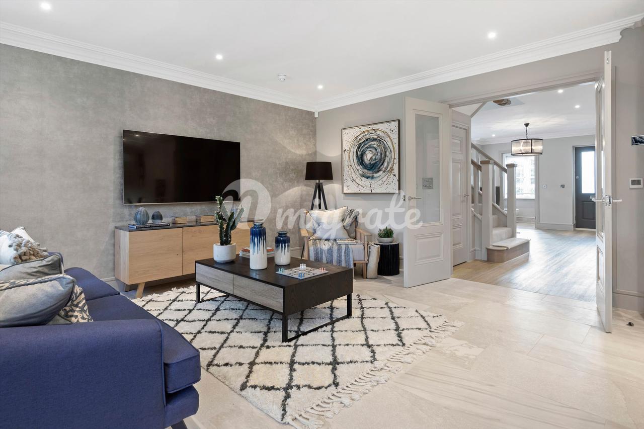 - Индивидуально окрашенная кухня с каменными столешницами и плавно закрывающимися ящиками. - Ассортимент встроенной бытовой техники Miele - Подстольный винный шкаф Caple - кран с горячей водой «Вулкан» - Сантехника Villeroy & Boch с латунной посудой Vado - Теплые полы на первом и первом этажах с радиаторами на втором - Традиционный газовый камин в гостиной - Лестница с перилами из американского белого дуба, раскрашенными вручную столбиками и шпинделями, дополняющими цветовую схему интерьера. - Карниз холла и лестничной площадки, семейной зоны, гостиной, столовой и всех спален - Керамическая и фарфоровая плитка во всех ванных комнатах, кухне/зоне для завтрака и подсобном помещении. - Гараж с электричеством, светом и гаражными воротами с дистанционным управлением - Ландшафтный сад перед домом и газон для задних садов с наружным краном и одной розеткой - Сейчас принимаются заказы, 50% уже забронировано