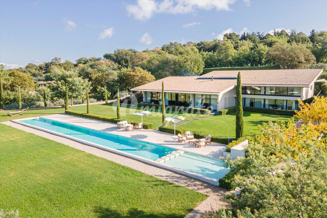 Расположенный на ровном благоустроенном участке площадью около двух гектаров, дом имеет несколько террас, которые ведут к оливковой роще, фруктовому саду и изысканному лесу, включающему сосны, секвойи, благородные кедры, дубы и мимозы). Вы также найдете замечательный 34-метровый бассейн, японский пруд и важную площадку для игры в петанк.