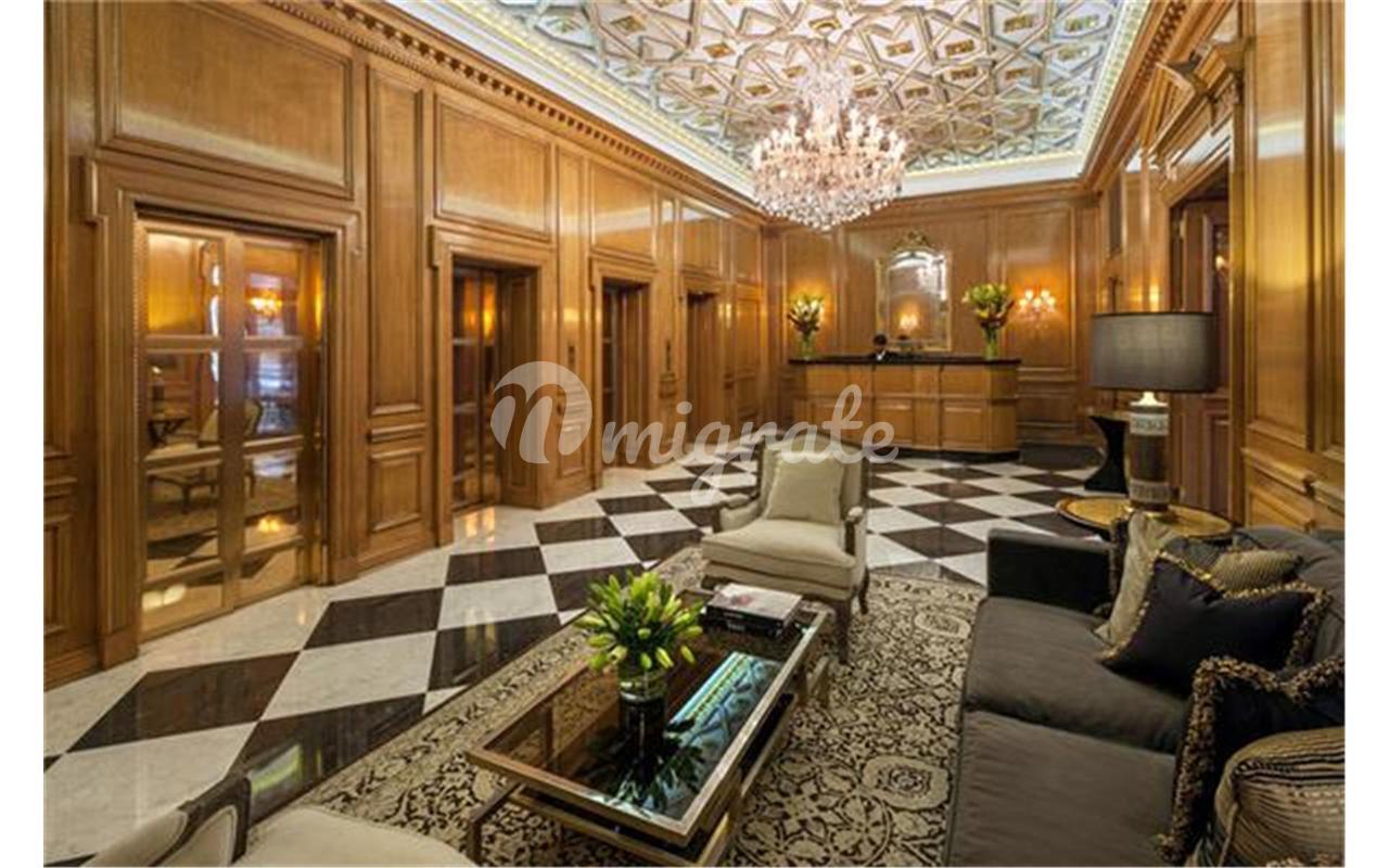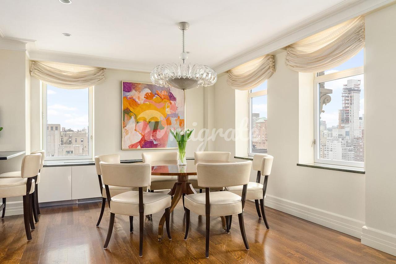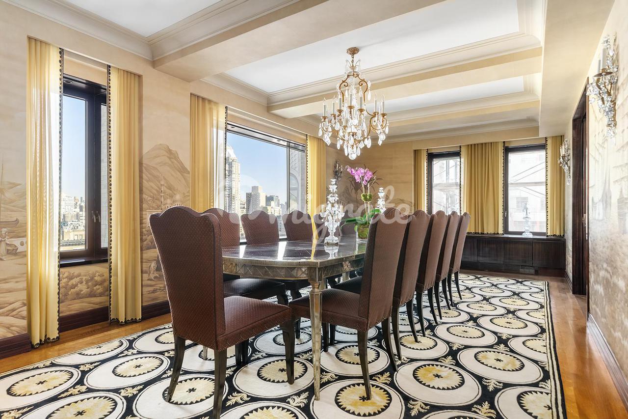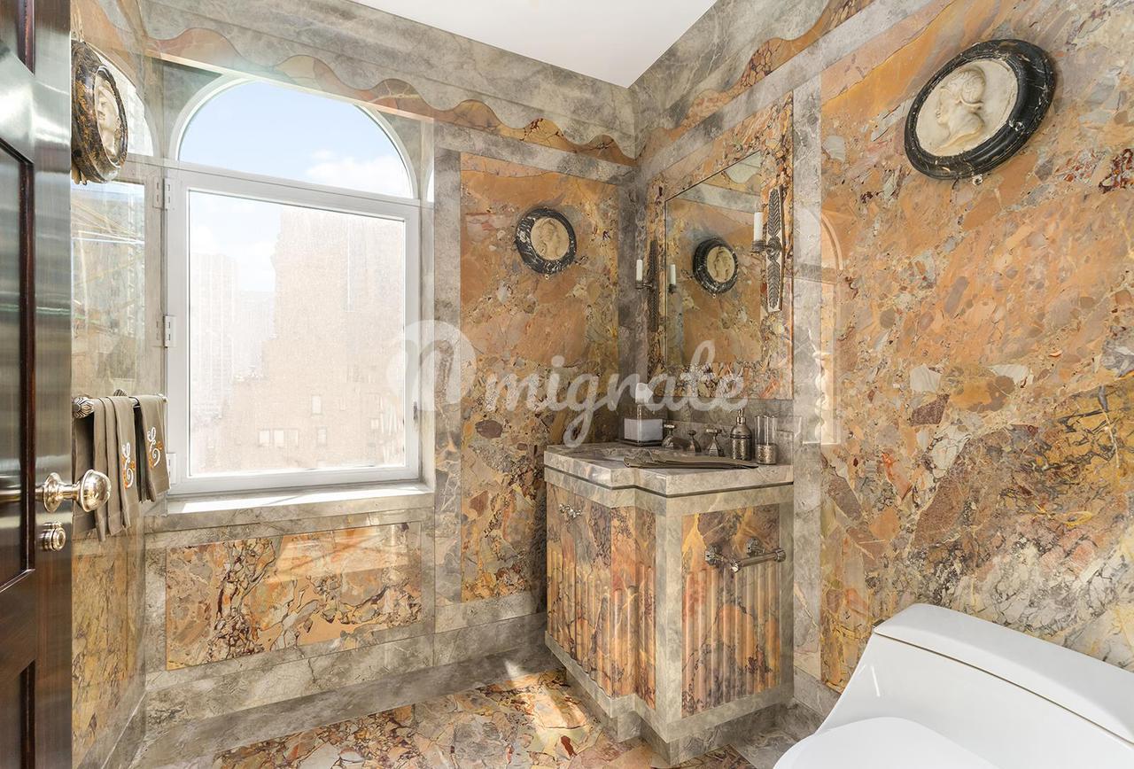 При входе частный лифт приветствует вас в изящной галерее, которая соединяется со всеми основными помещениями дома. Прямо за галереей находится гостиная шириной 24 фута с прилегающим баром, библиотекой и большой угловой столовой. Все три развлекательных зала плавно переходят друг в друга с видом на Парк-авеню. Просторная столовая вмещает около 30 гостей и имеет высокие раздвижные двери, которые удобно ведут в кладовую дворецкого. Рядом со столовой находится хорошо оборудованная кухня шеф-повара с окнами и отдельной комнатой для завтрака с окнами. Кухня St. Charles украшена изготовленными на заказ шкафами из дерева венге и лакированной кости, столешницами из отшлифованного черного гранита Absolute Black, стеклянным фартуком, островной столешницей и подоконниками из мрамора Verde Bamboo, барной стойкой и обширным пространством для хранения вещей. Бытовая техника включает двойную духовку Wolf, холодильник/морозильник Sub-Zero, газовую плиту Wolf, вентилируемую вытяжку Gaggenau, микроволновую печь Wolf для гурманов и посудомоечную машину Miele. Рядом с кухней находится вторая мраморная туалетная комната с водопроводной арматурой, комната для персонала с полноценной ванной комнатой и полноценная прачечная.