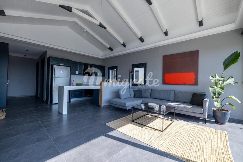 Отдельная 2-этажная вилла (дуплекс) с 2 спальнями и 1 гостиная и кухня. Характеристики: частный сад (250 м2), 2 ванные комнаты, 2 балкона, терраса в саду, пол с подогревом, вид на море, мебель и кухон