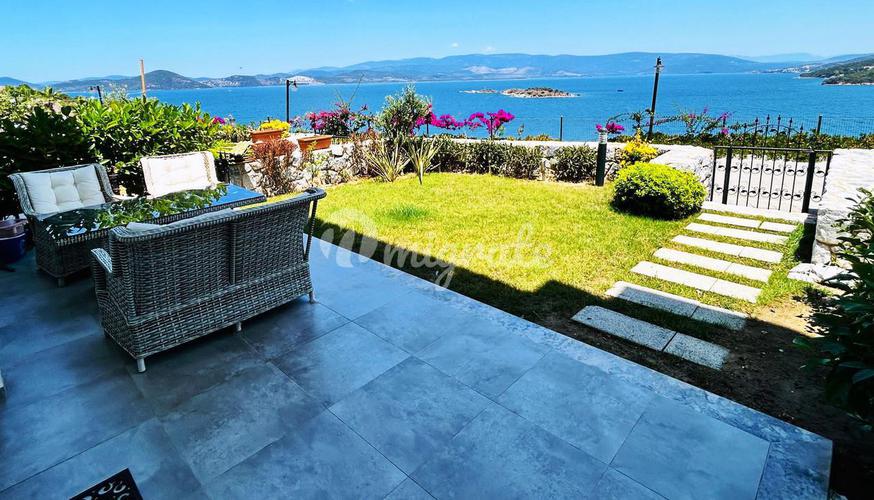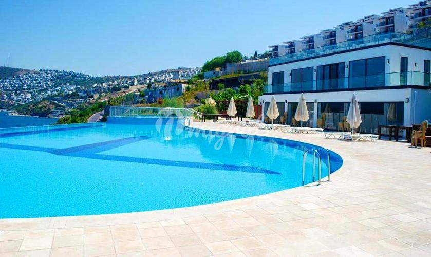Роскошная бутик-резиденция с частным песчаным пляжем в Бодруме. В апартаментах и на территории: 2 спальни, 1 гостиная и кухня, 1 ванная комната, большой балкон с видом на море, панорамный вид, частный