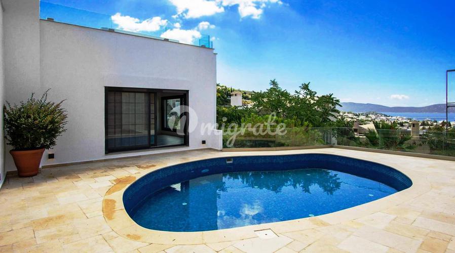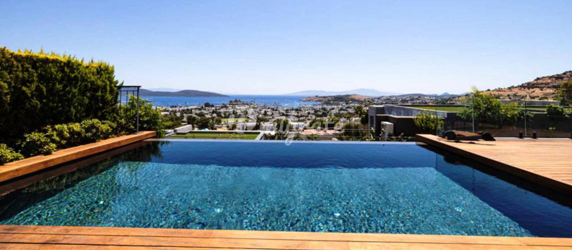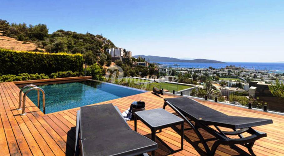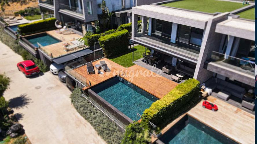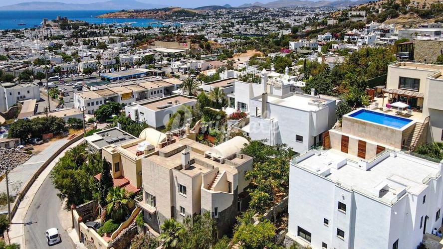 Вилла: 5 спален + 1 гостиная + 4 ванные комнаты + частный бассейн и сад. Полностью приватный дом в центре Бодрума на 508 кв.м. земли с великолепным видом на море, пристань для яхт и замок Бодрума. Нед