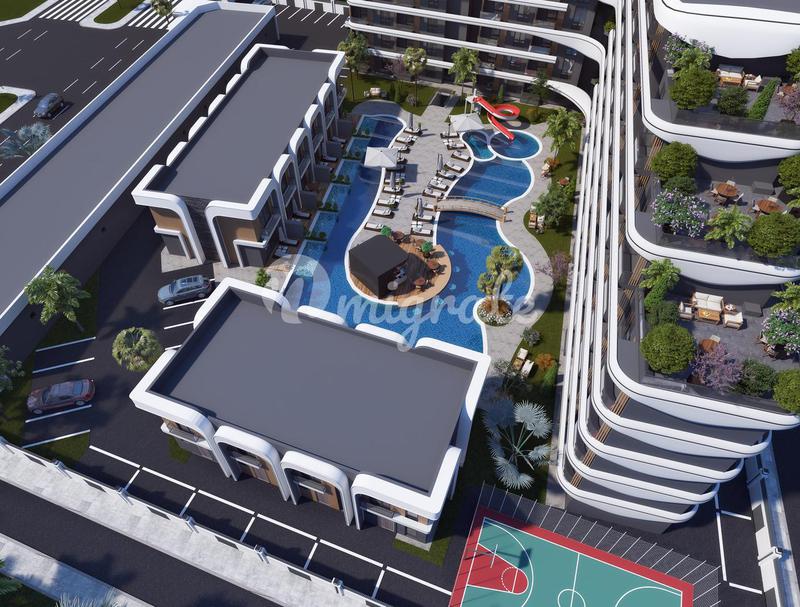 Новый жилой комплекс находится в 1.3 км от набережной района Оба, известного своими ресторанами и кафе, своей близостью к морю, природе и городу, где преобладают апельсиновые и лимонные рощи, а также