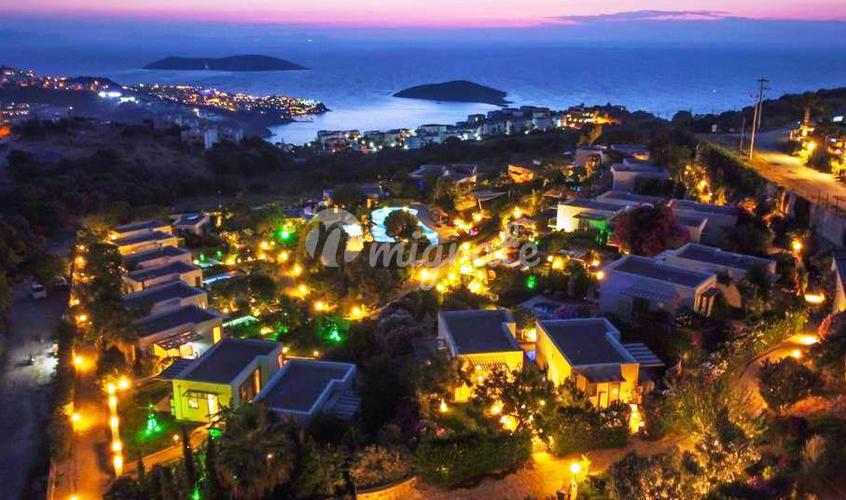 Пляжная резиденция на берегу моря расположена на юге Бодрума на 21 га земли и является одной из 73 двухуровневых резиденций. Как один из наиболее удачно расположенных жилых комплексов, до пляжа и обще