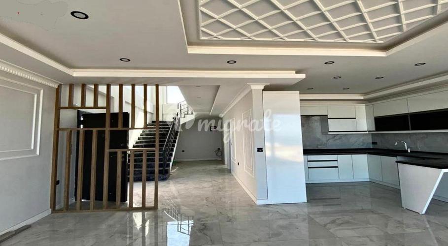 Вилла площадью 210 кв. м расположена в новом жилом комплексе в районе Карыджак. Жилой проект, включающий отель 5*, апартаменты и виллы класса люкс, расположен в живописной холмистой местности у поднож