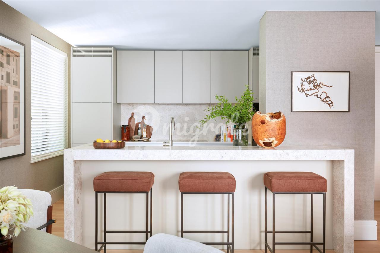 Квартиры отражают дух и яркость своего местоположения и отличаются качеством, мастерством и оригинальностью. Приемная открытой планировки, столовая и кухня создают современный образ жизни. Эта двухсторонняя квартира выходит окнами на северо-запад, зимний сад и балкон Джульетты на всех окнах, что позволяет естественному свету наполнять каждую комнату. Обтекаемая кухня оснащена встроенной бытовой техникой Miele или аналогичной, каменными столешницами и фурнитурой из нержавеющей стали. Эта квартира имеет главную спальню и ванную комнату, а также большой кабинет, который можно обставить, чтобы получить просторную вторую спальню. Обе ванные комнаты отделаны серым мрамором с белыми прожилками, дополнены элегантными черными светильниками и фурнитурой от MCS, Duravit, Bette или подобных.