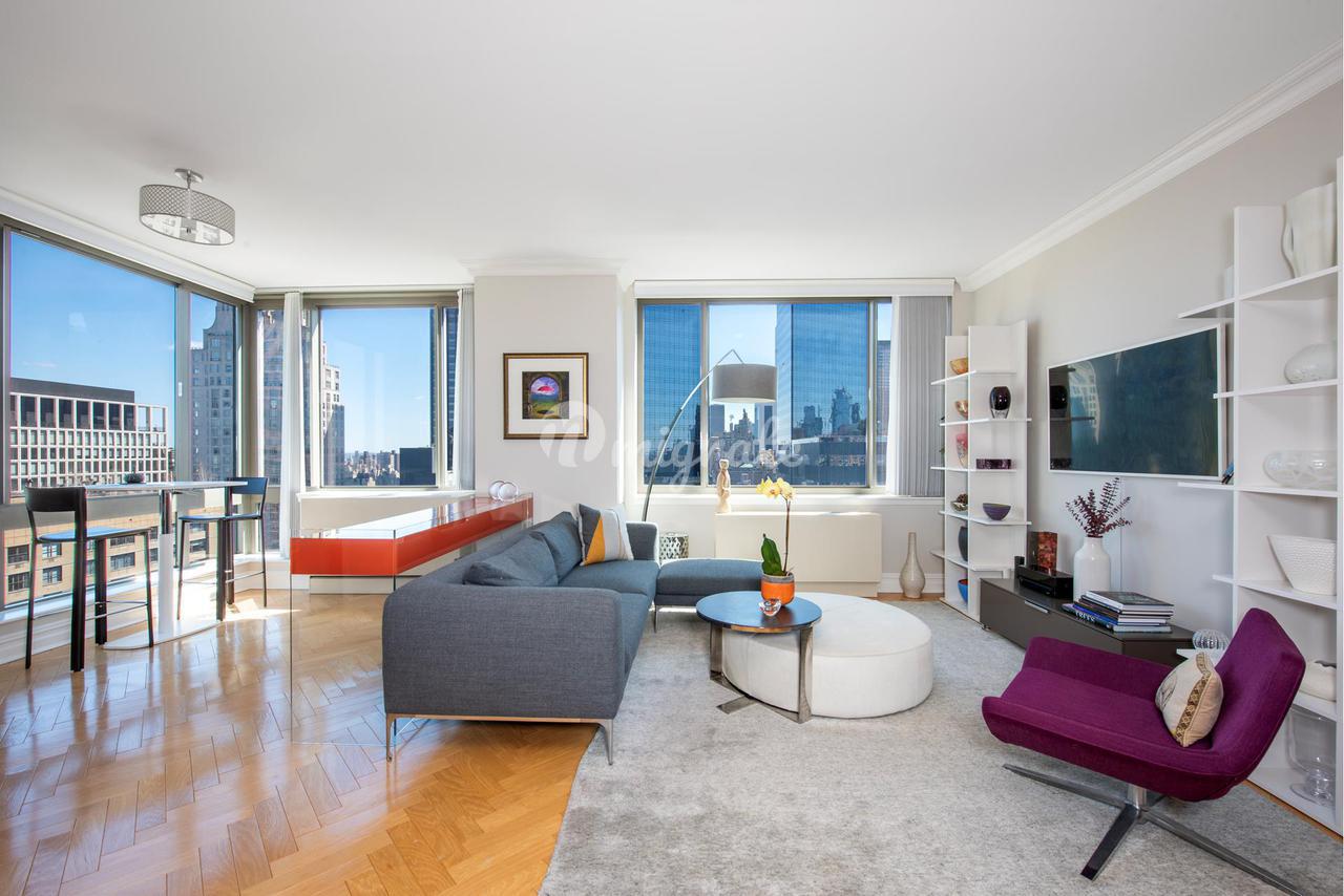 Добро пожаловать в этот сказочно великолепный, залитый солнцем кондоминиум с 2 спальнями и 2,5 ванными комнатами в отличном состоянии для заселения - всего в двух шагах от Центрального парка, Линкольн-центра, Коламбус-Серкл и ультрашикарного Тайм Уорнер-центра. Войдя, вы обнаружите элегантное фойе с удобной дамской комнатой слева от вас. Продолжайте, и вы обнаружите очень просторную гостиную с отдельной обеденной зоной, идеально подходящую для всех ваших развлечений. Кухня с окнами полностью оборудована гранитной столешницей и находится в первозданном состоянии. В обеих просторных спальнях есть собственные мраморные ванны. Кроме того, в главной ванной комнате есть отдельный душ, ванна и двойной туалетный столик. В целом, квартира кажется открытой и просторной благодаря 9-футовым потолкам и большим окнам с северной, восточной и западной экспозициями, лепнине в виде короны и деревянным полам. Также есть стиральная машина и сушилка! Потрясающий вид на горизонт и вершину Гудзона. И все это в очень востребованном здании white glove с полным спектром услуг, тренажерным залом и помещением для хранения велосипедов. В качестве дополнительного преимущества в апартаментах имеется собственное помещение для хранения вещей.