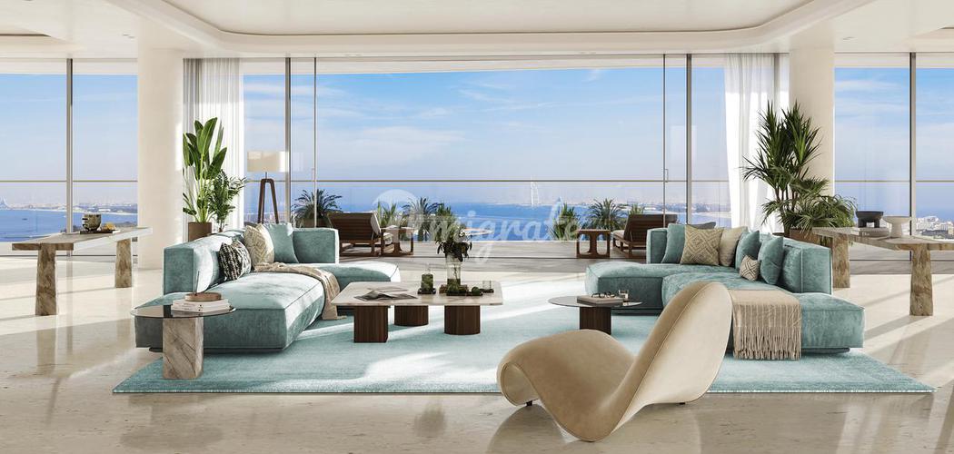Пентхаус расположен в новом жилом комплексе, состоящем из 22 вилл, на Палм-Джумейра. Комплекс имеет собственный частный пляж, круглосуточный консьерж, охрану, валет паркинг, бар, ресторан, центральный