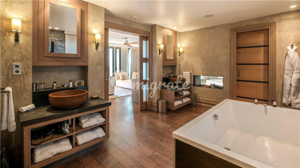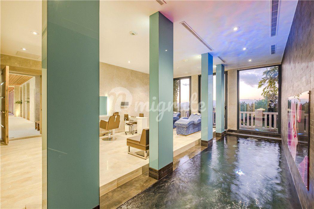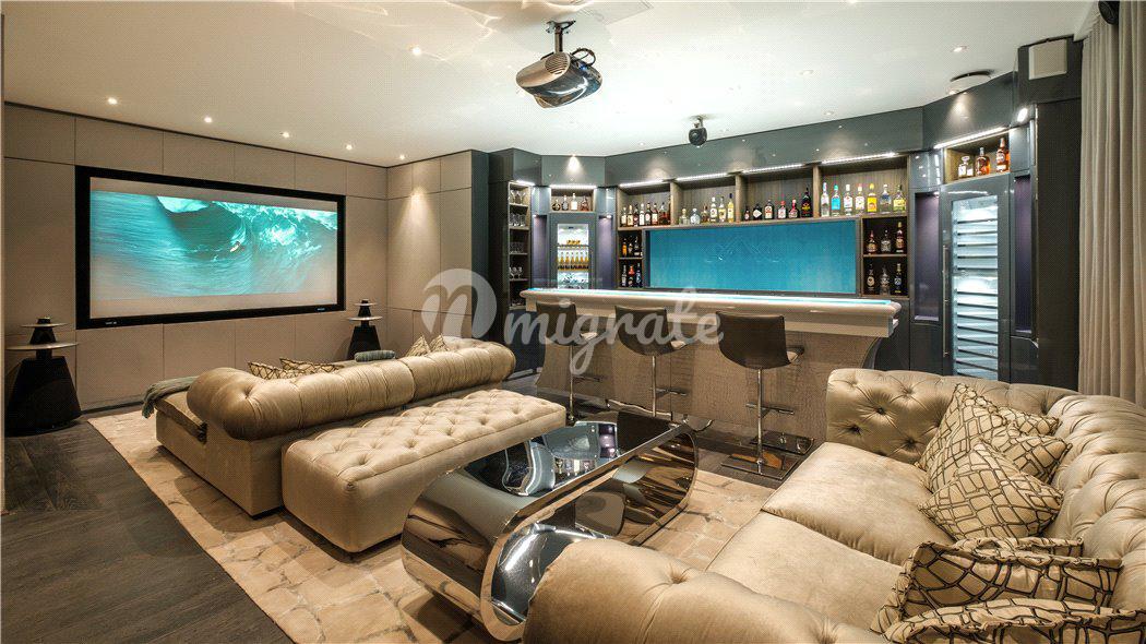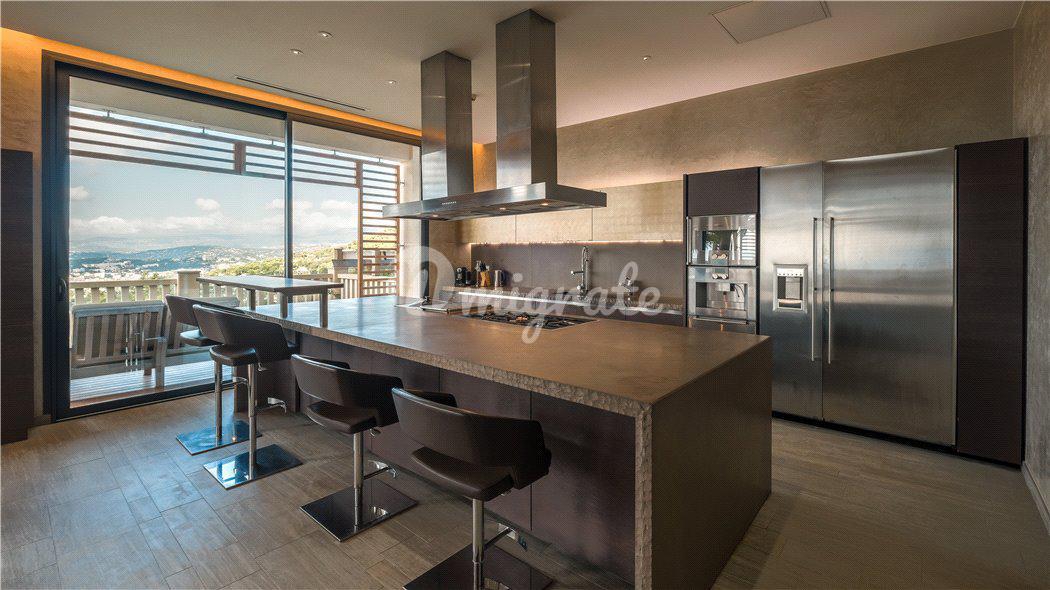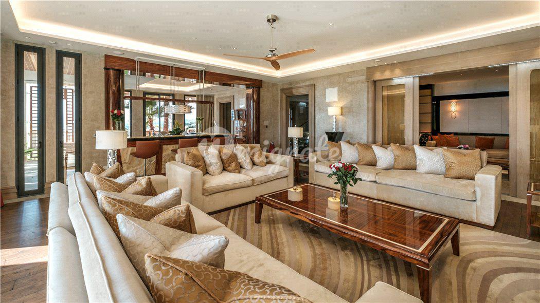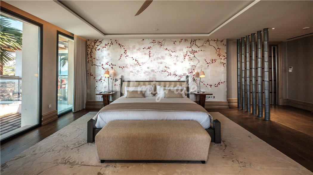 В распоряжении будущих владельцев: хозяйская спальня с гостиной, гардеробной, ванной комнатой и несколькими частными террасами, а также еще 7 спален с отдельными ванными комнатами. Главный холл с лифтом, большая гостиная с камином, бар, столовая и большая современная кухня с барной стойкой для завтрака. А также, помещение для персонала, тренажерный зал, спа-салон, винный погреб, танцевальная студия и кинотеатр.