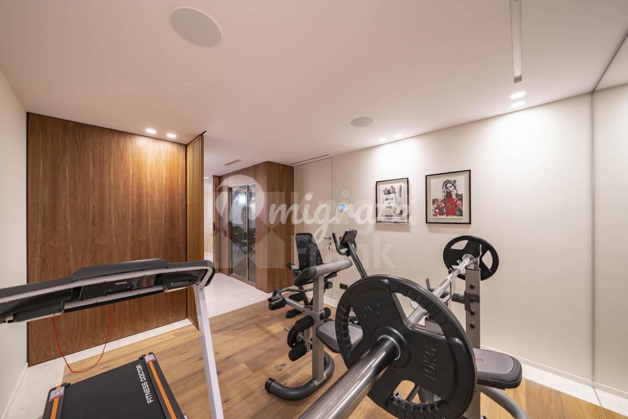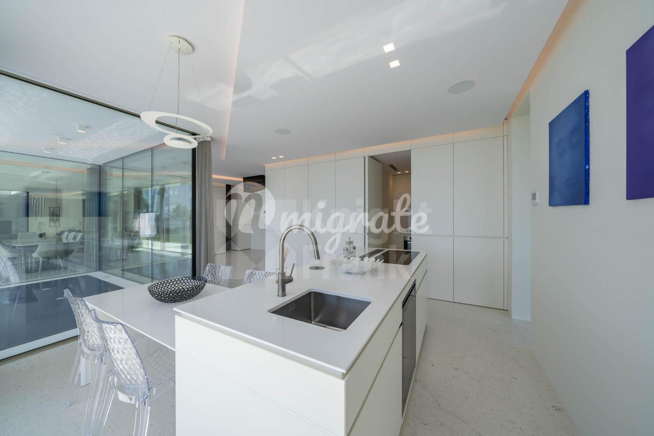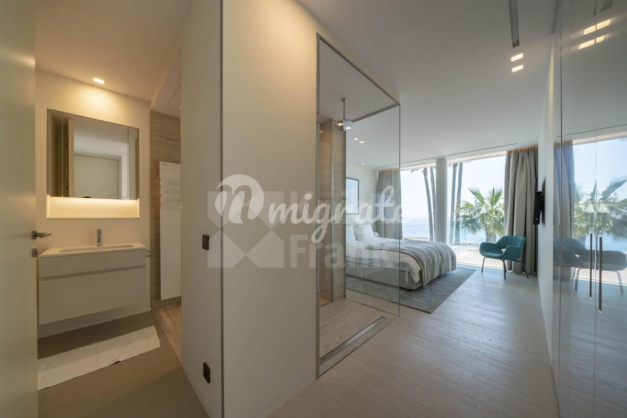 Просторная вилла включает прихожую, просторную гостиную, столовую, гостевой санузел, кухню открытого плана, вторую отдельную кухню, две гостевые спальни с ванной комнатой и две спальни с ванными комнатами и гардеробными. Основная спальня включает ванную комнату и гардеробную с выходом на просторную террасу. Все спальни включают террасы с видами на море. На вилле также находится фитнес-зал, сауна, парная комната, прачечная, отдельная спальня с ванной комнатой для персонала и гараж на 3 автомобиля.