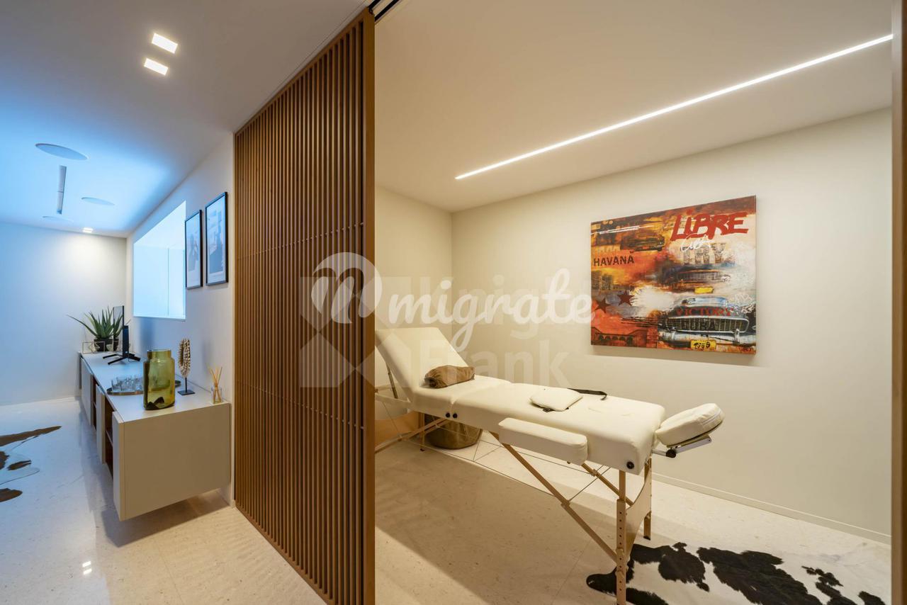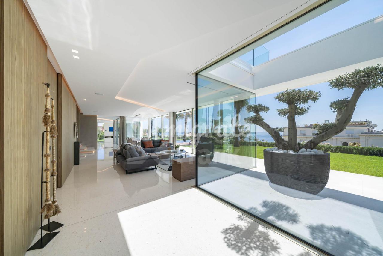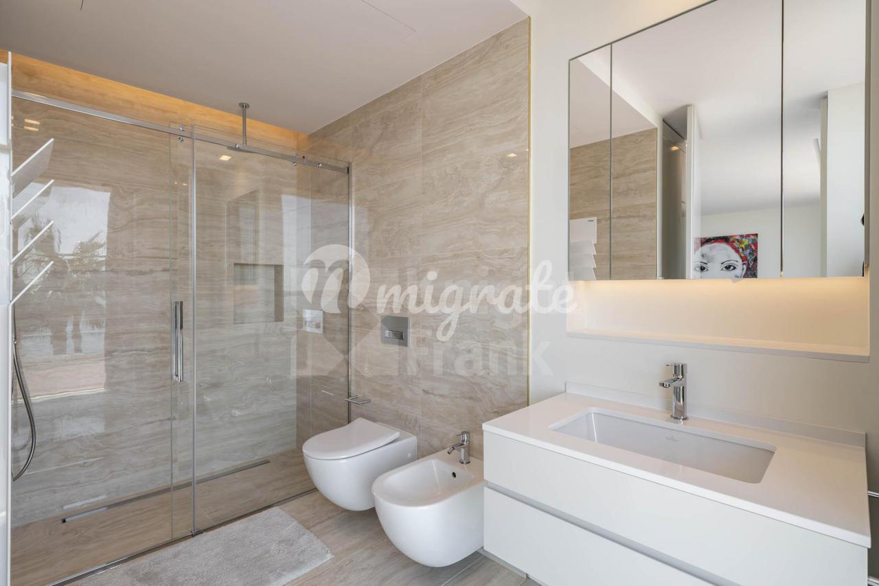 Просторная вилла включает прихожую, просторную гостиную, столовую, гостевой санузел, кухню открытого плана, вторую отдельную кухню, две гостевые спальни с ванной комнатой и две спальни с ванными комнатами и гардеробными. Основная спальня включает ванную комнату и гардеробную с выходом на просторную террасу. Все спальни включают террасы с видами на море. На вилле также находится фитнес-зал, сауна, парная комната, прачечная, отдельная спальня с ванной комнатой для персонала и гараж на 3 автомобиля.