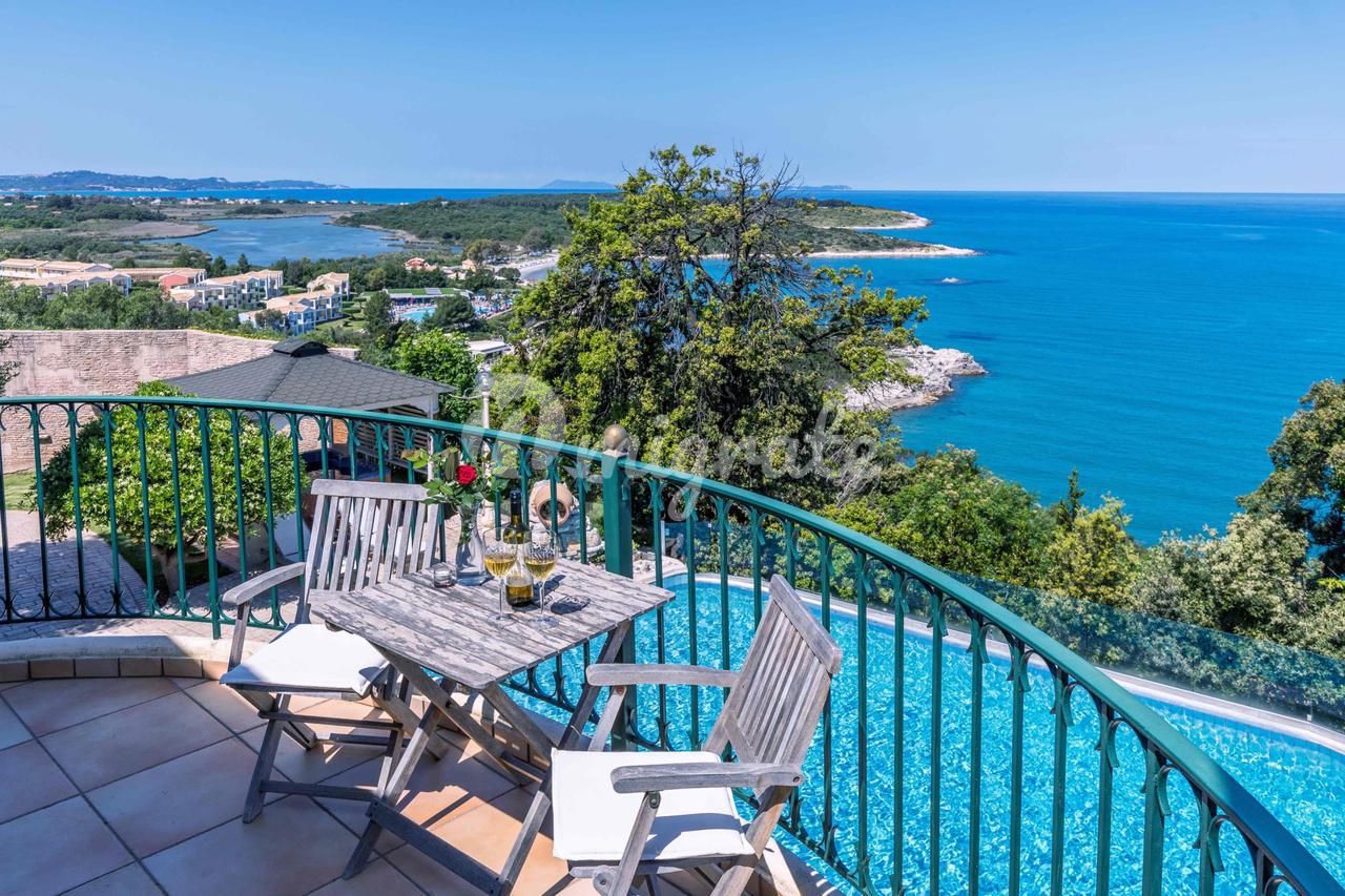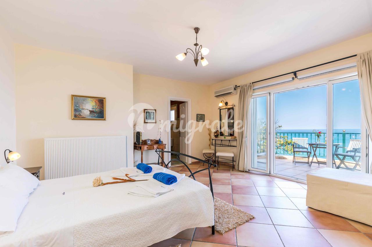 Исключительная вилла с потрясающим видом на море расположена в районе Агиос Спиридон на северо-востоке острова Корфу, в нескольких шагах от моря. Вилла имеет доступ к приватному пляжу. Вилла состоит из 3 уровней. На нижнем уровне находится гараж на 2 автомобиля с электронными воротами, складское помещение, тренажерный зал, игровая комната с бильярдным столом и спальня с ванной комнатой и душевой. На первом этаже находится кухня, обеденная зона и гостиная с выходом на веранду и в сад к подогреваемому бассейну. На этом же уровне расположена спальня с ванной комнатой. На втором этаже находятся две спальни с двумя ванными комнатами и джакузи, а также спальня для детей с ванной комнатой.