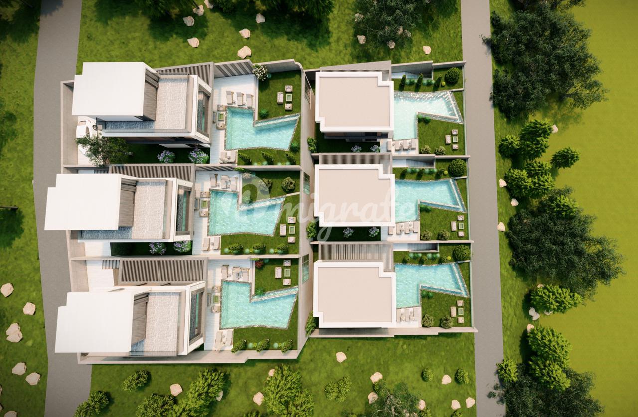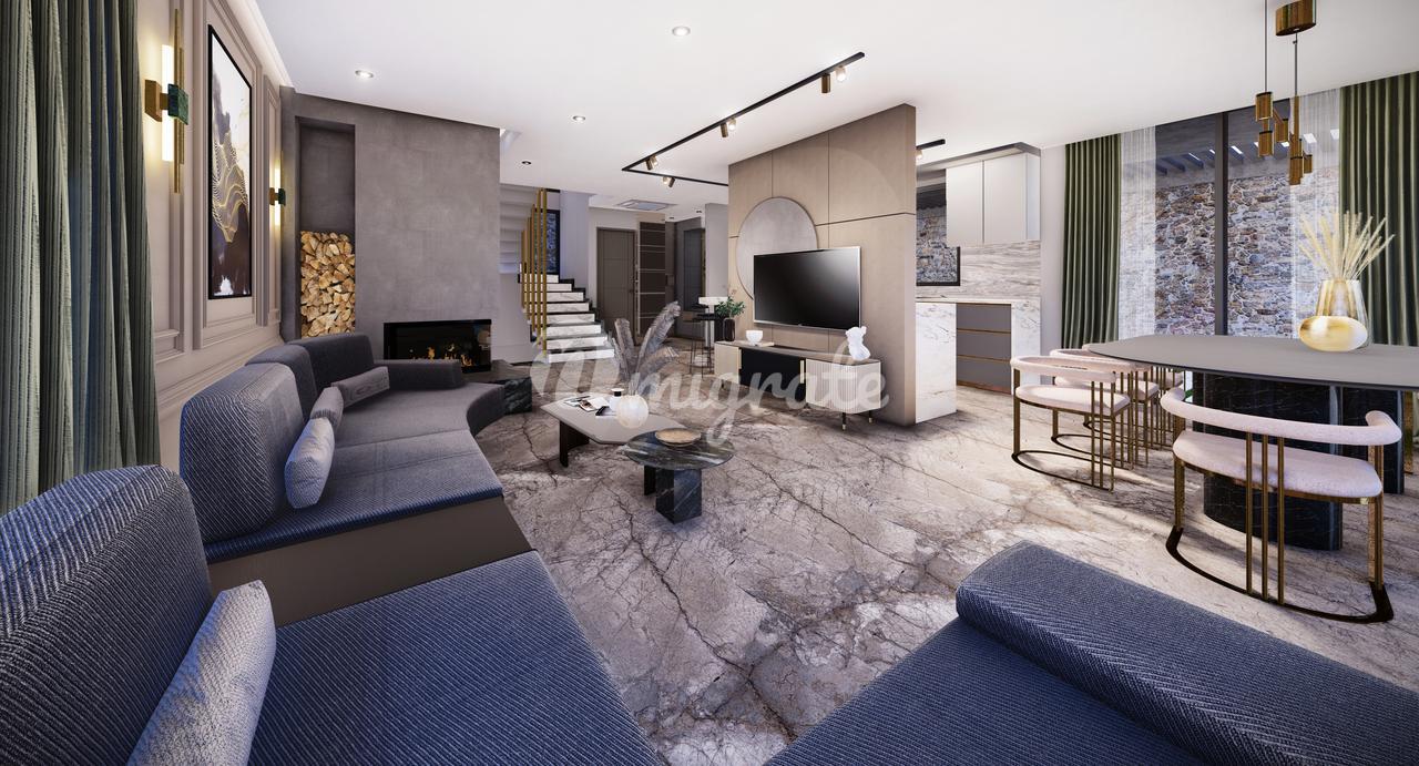 6 уникальных вилл находятся в бутик-комплексе в Калкане. Каждая вилла состоит из 4 спален, 1 гостиной и кухни, 4 ванных комнат. Удобства: джакузи в главных спальнях, сад и террасы у бассейна, подогрев полов, полный вид на море из сада и со всех этажей вилл, 84 м2 частный пейзажный бассейн, зона барбекю в саду, турецкая баня, сауна, теплый крытый бассейн (23 м2), прачечная. Инфраструктура: 600 метров до пляжа, 200 метров до всех магазинов.