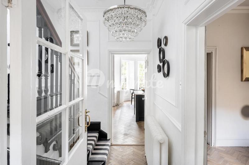 Квартира занимает весь цокольный этаж здания того периода и имеет значительное преимущество в виде права собственности на сад. Входная дверь открывается в большой холл с двумя спальнями впереди, обе и