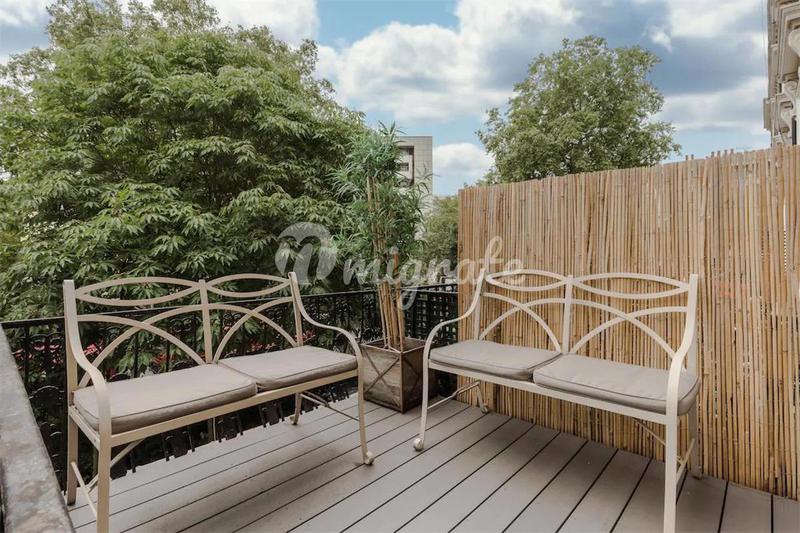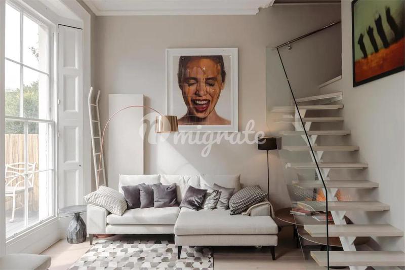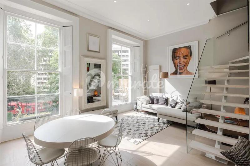 Двухуровневые апартаменты расположены в историческом особняке Лондона с частным садом. На первом этаже расположены современная оборудованная кухня со встроенной техникой премиум-класса и кухонным остр