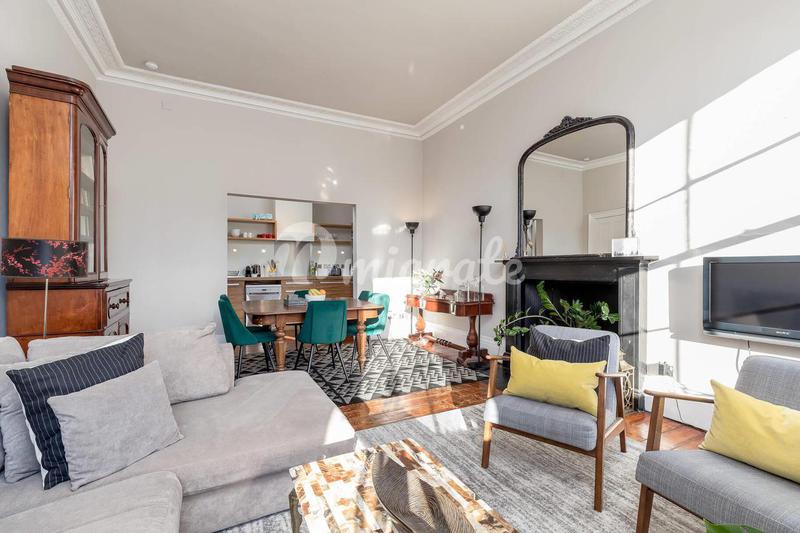 Это светлая и просторная квартира на третьем этаже. Прекрасная гостиная имеет два створчатых окна, из которых открывается вид на крышу. Есть особенность камина, создающего прекрасный фокус. Всего есть
